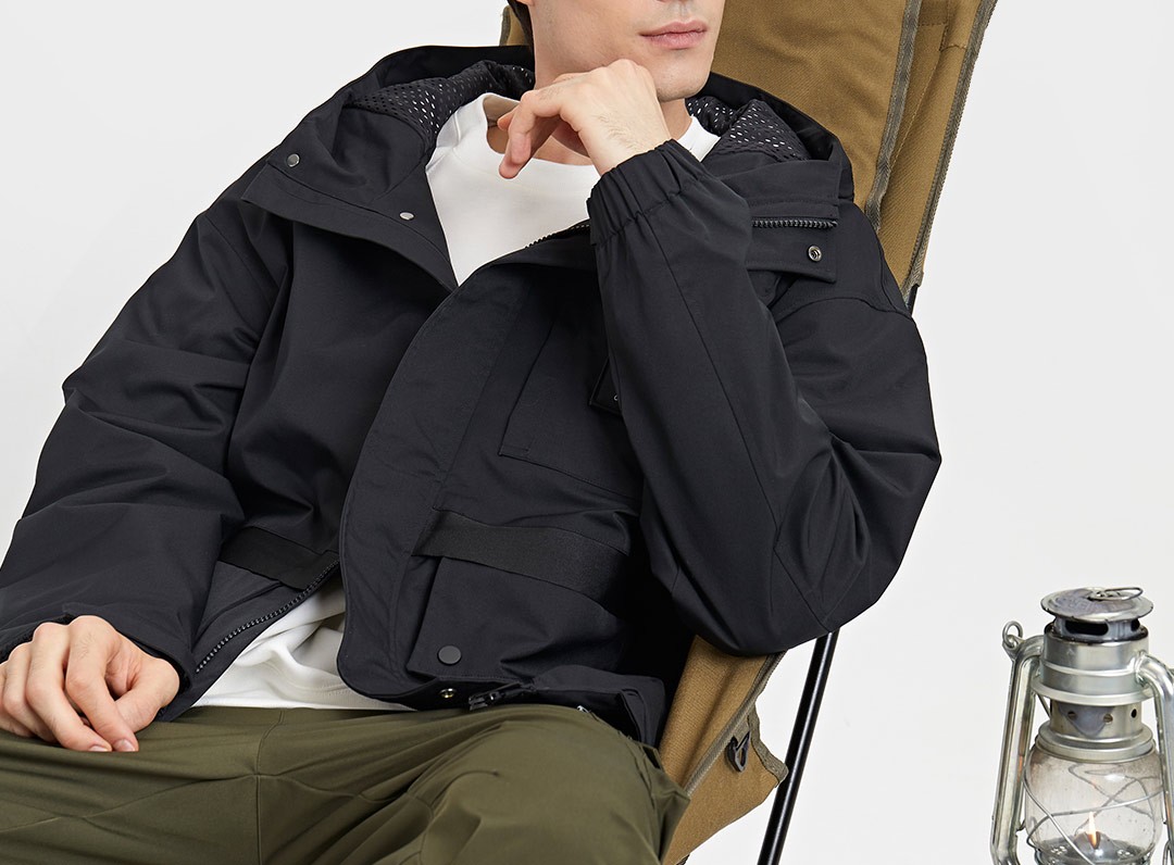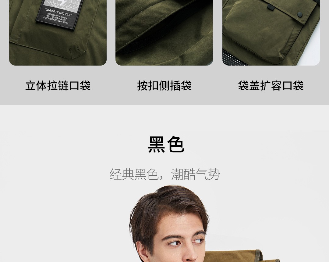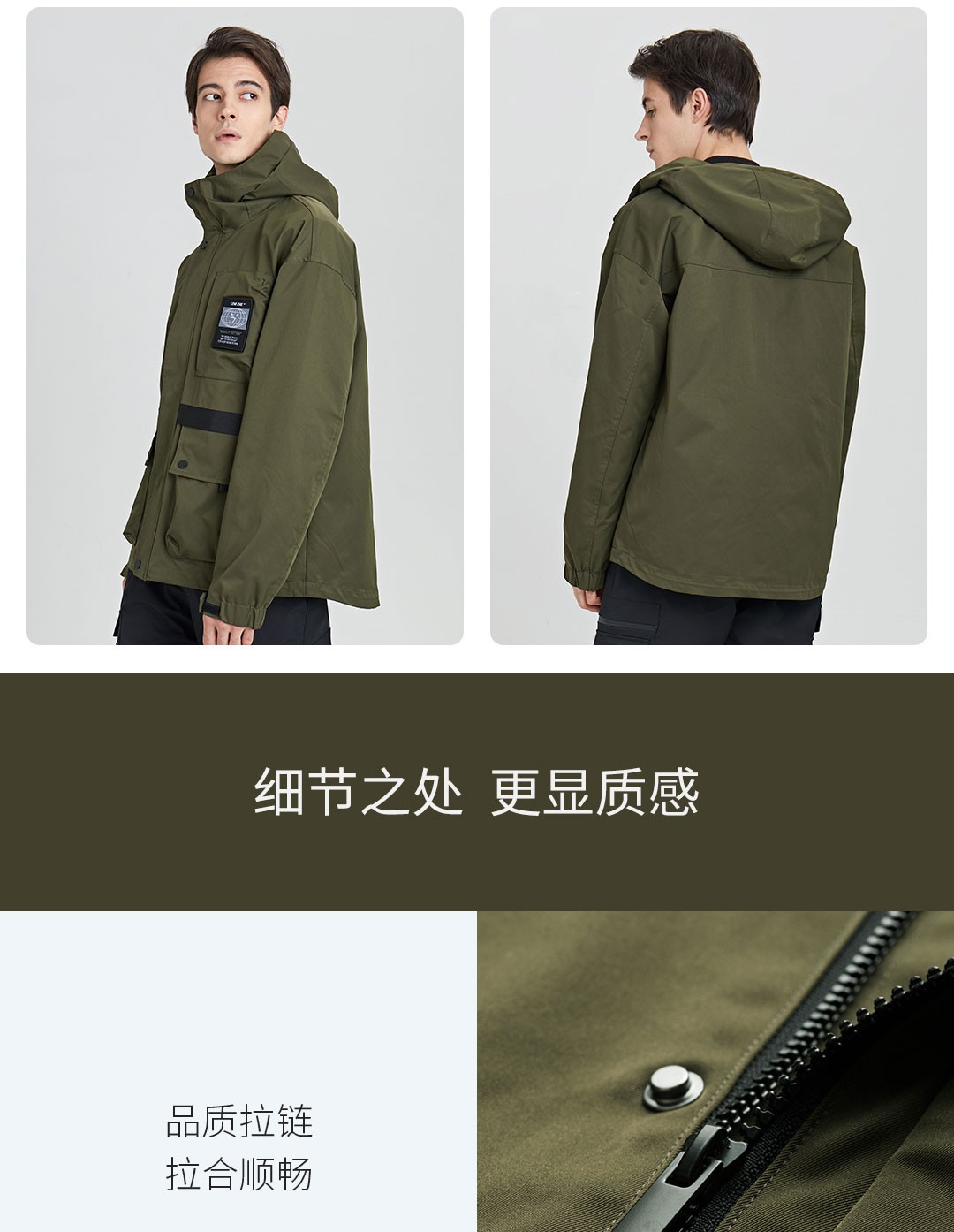 连帽科技面料防风防水防污工装外套百搭四级防水风衣男士休闲冲锋衣 军绿色 165/84A