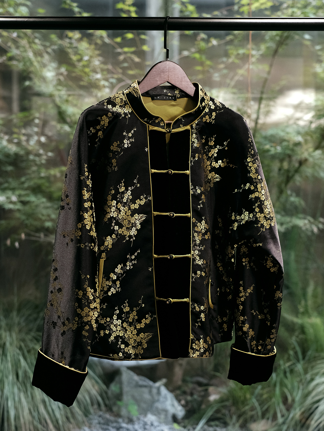 下架|盛唐婧 | 金昭梅竹轻奢时尚新中式老缎夹棉外套-黑绿