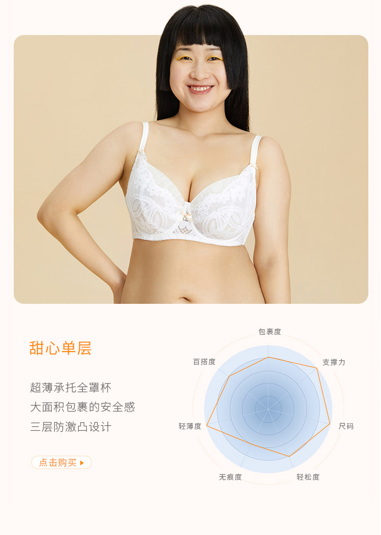 【积分兑换】[薄荷糖]大胸显小超薄全罩杯全包稳固不晃内衣女