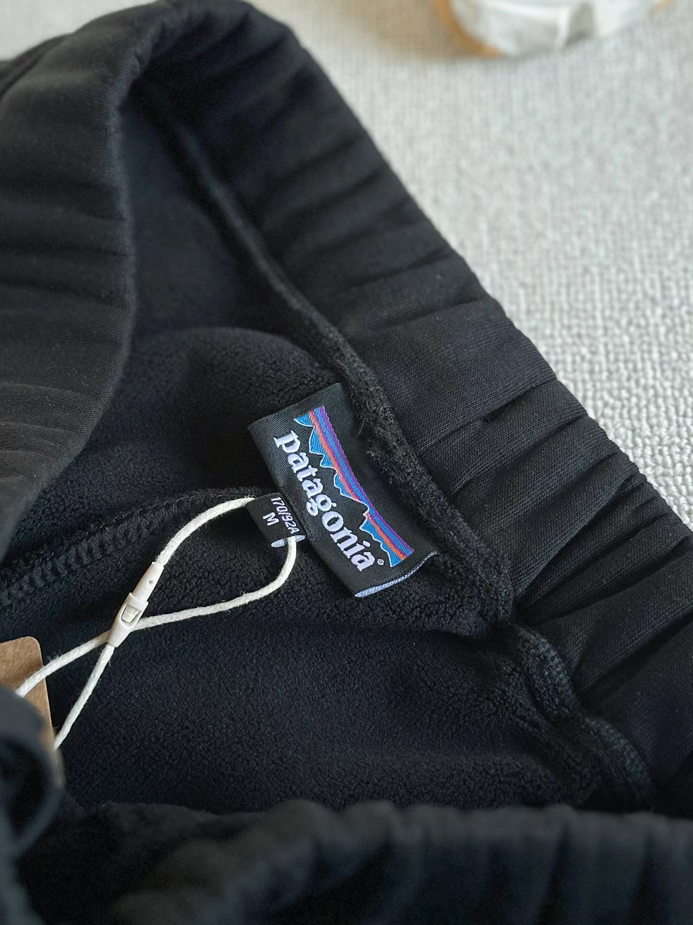 此款裤子采用的是专门定制的环保科技抓绒面料 克重接近800g,上身柔软亲肤,厚实保暖 ,而且十分的轻便。 Regular Fit 常规版型剪裁 让你在冬季也不会觉得臃肿,弹性腰带,可通过外部抽绳进行调节,正面带有两个暖手口袋,臀部的立体的裁剪工艺穿着特别舒适。Fair Trade的缝制工艺更是只有原厂带能做到!