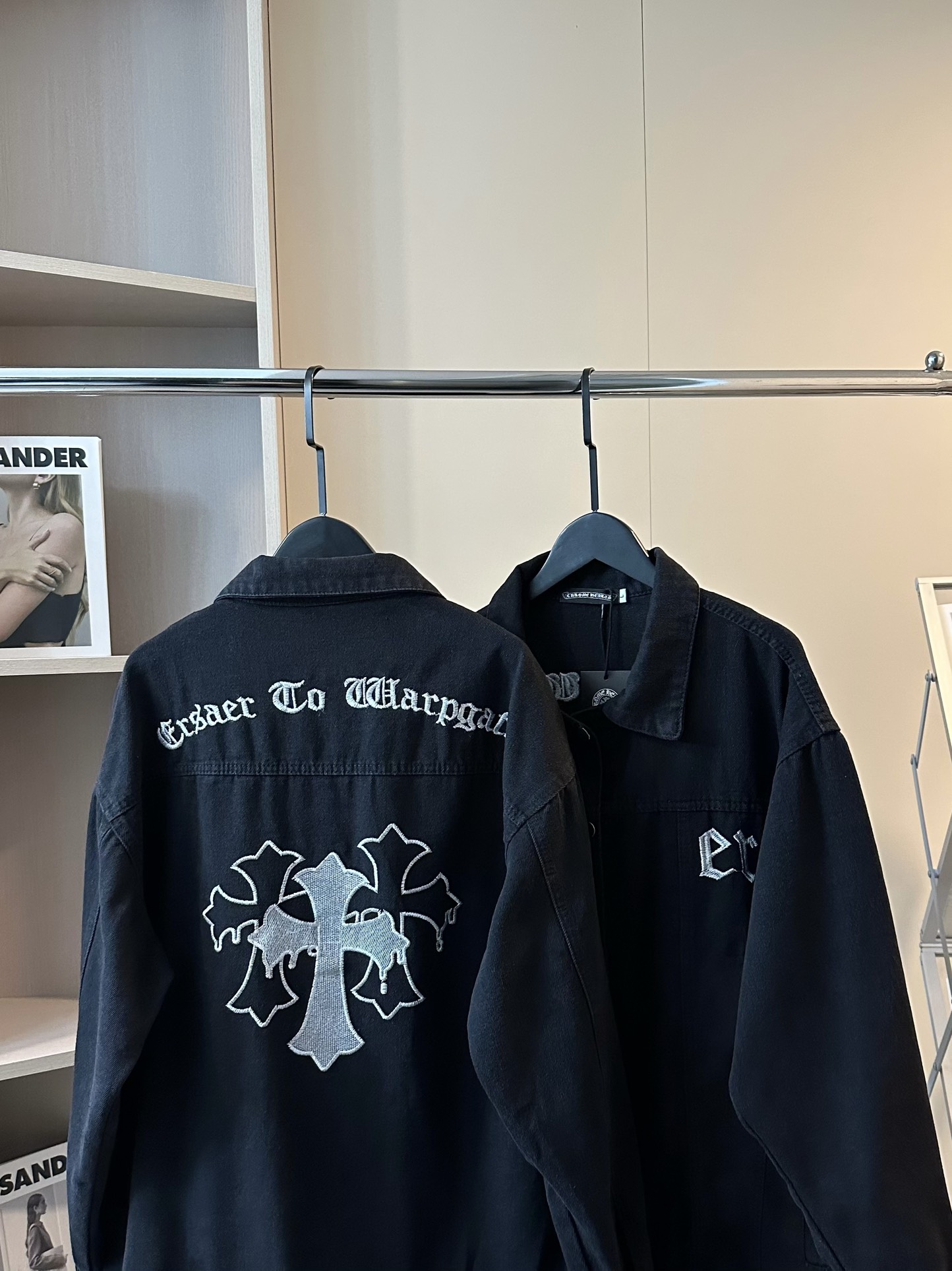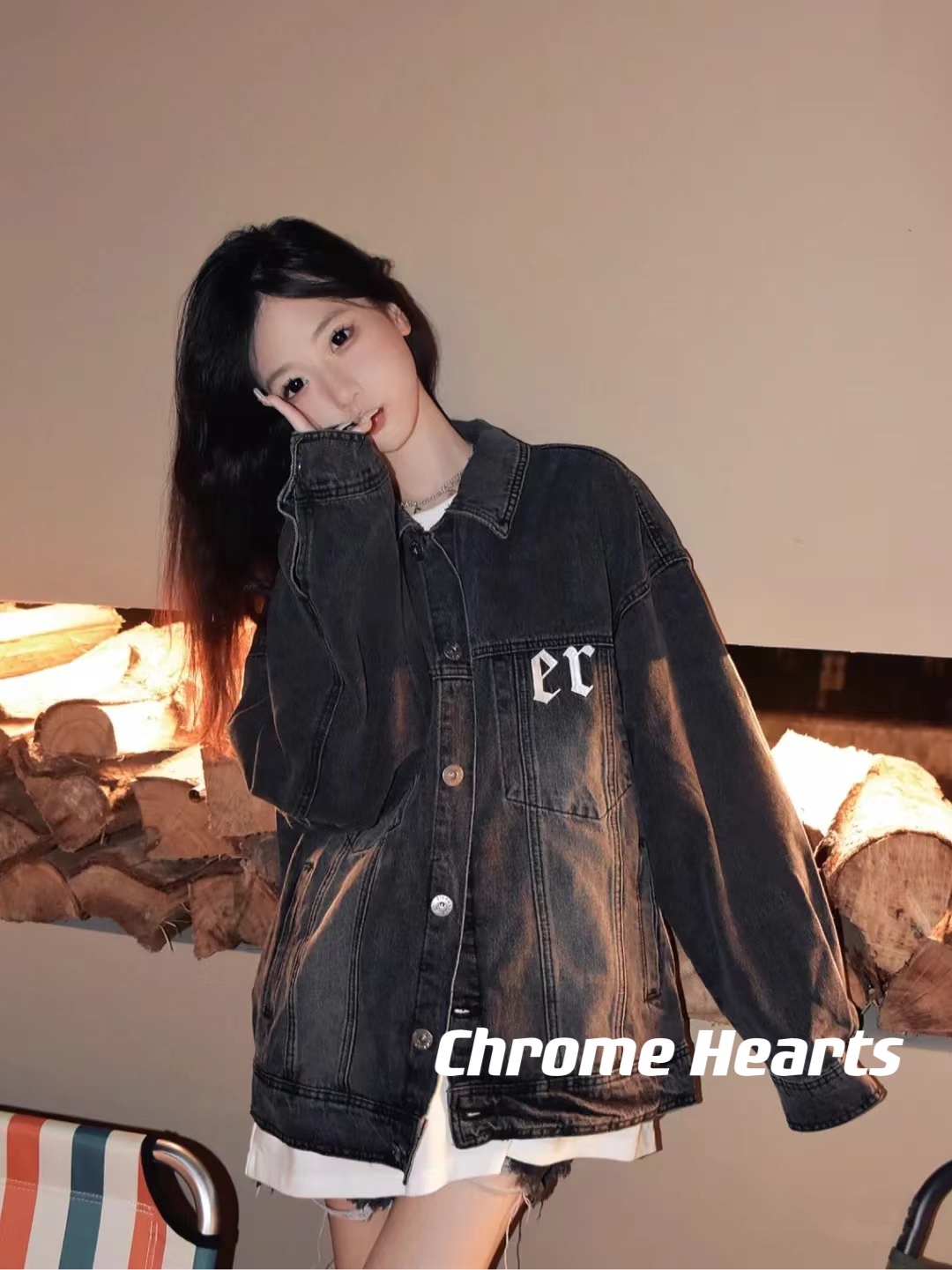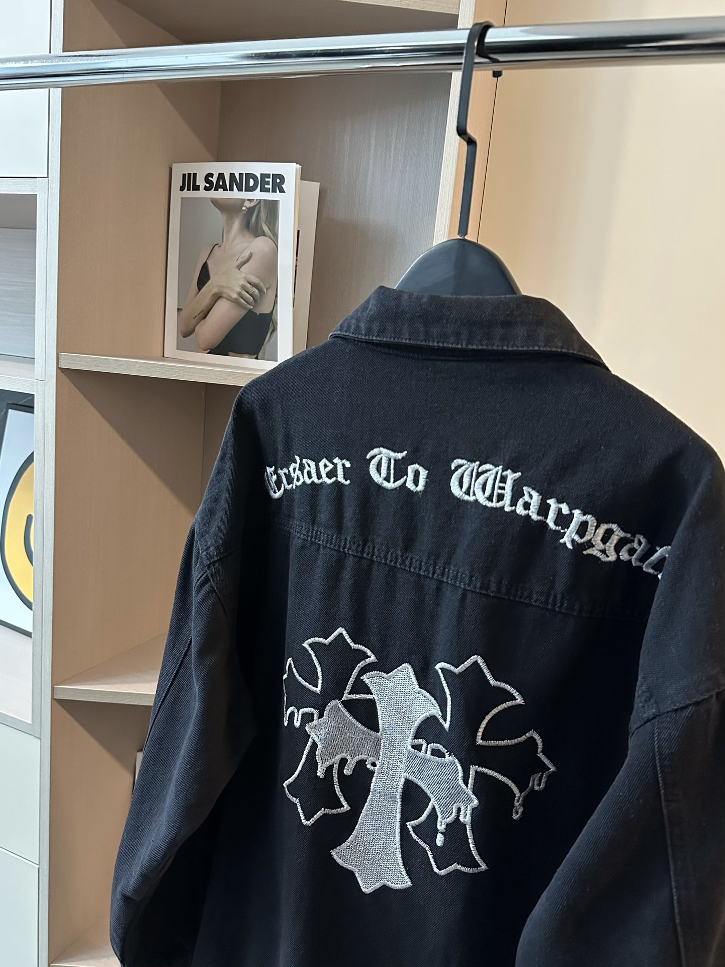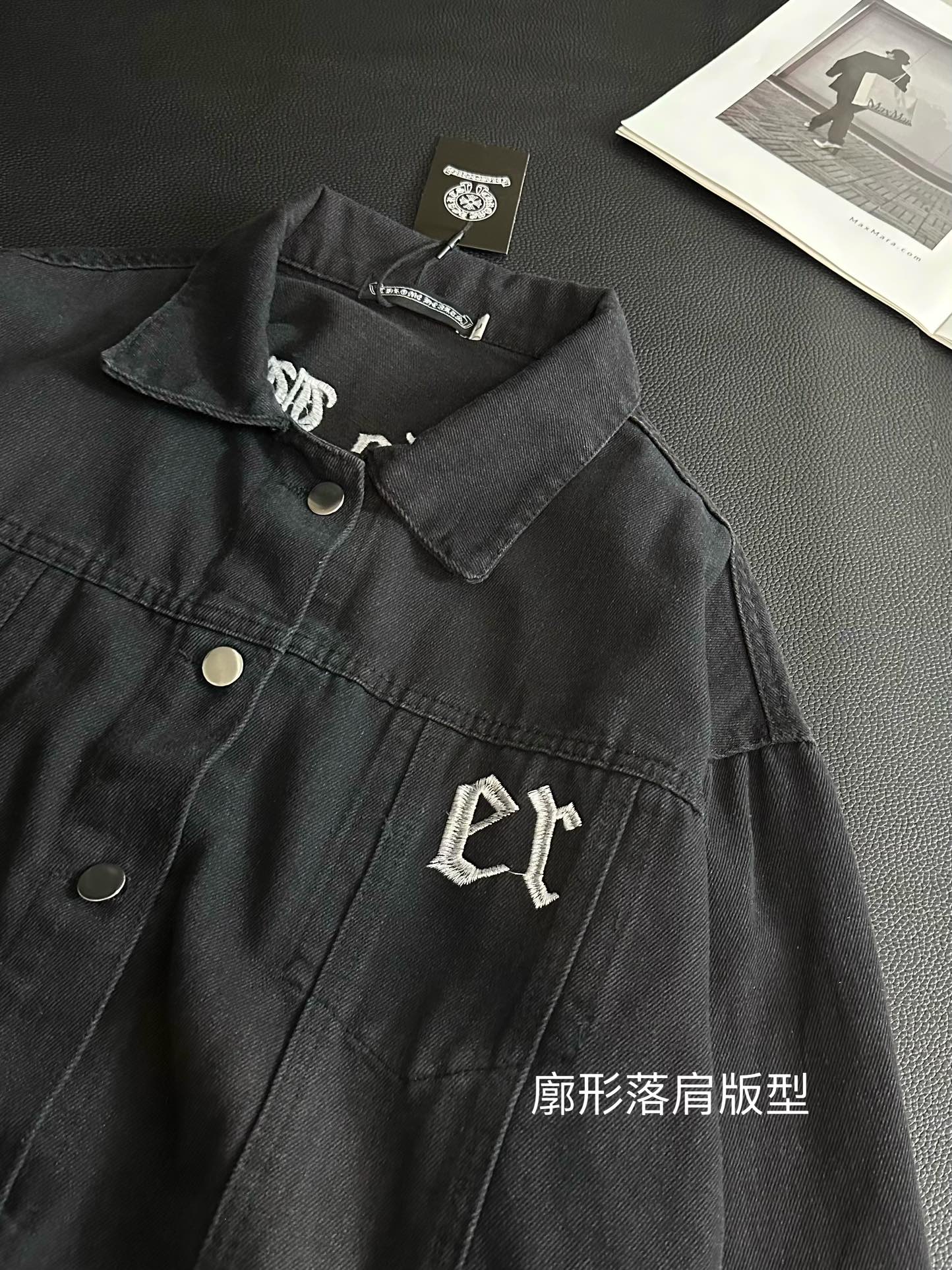克罗心重工刺绣水洗做旧牛仔夹克外套
