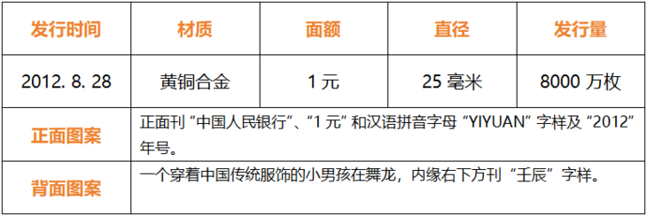 ▽2012壬辰龙年贺岁普通纪念币▽
