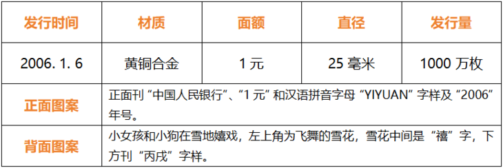 ▽2006丙戌狗年贺岁普通纪念币▽