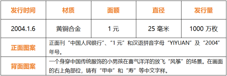 ▽2004甲申猴年贺岁普通纪念币▽