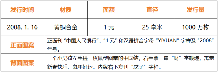 ▽2008戊子鼠年贺岁普通纪念币▽
