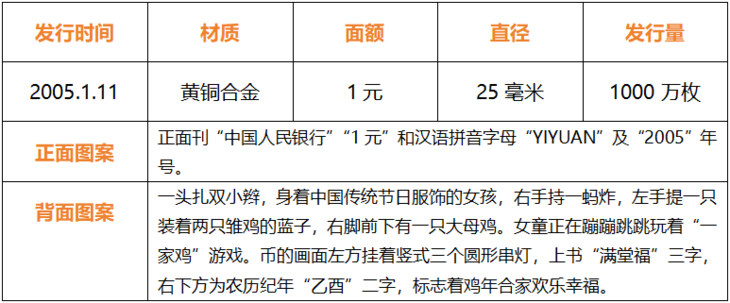 ▽2005乙酉鸡年贺岁普通纪念币▽