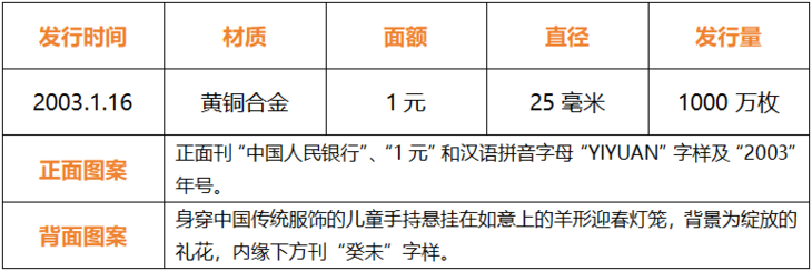 ▽2003癸未羊年贺岁普通纪念币▽