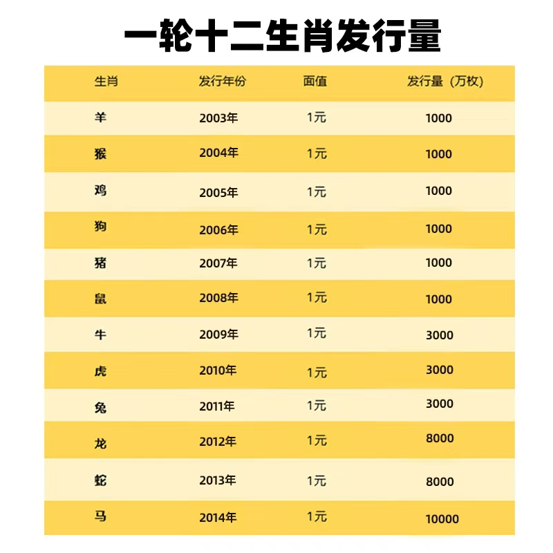 首轮贺岁普通纪念币是中国人民银行正式发行的中华人民共和国法定货币,自2003羊年贺岁纪念币始,至2014马年贺岁纪念币止,全套共12枚。
