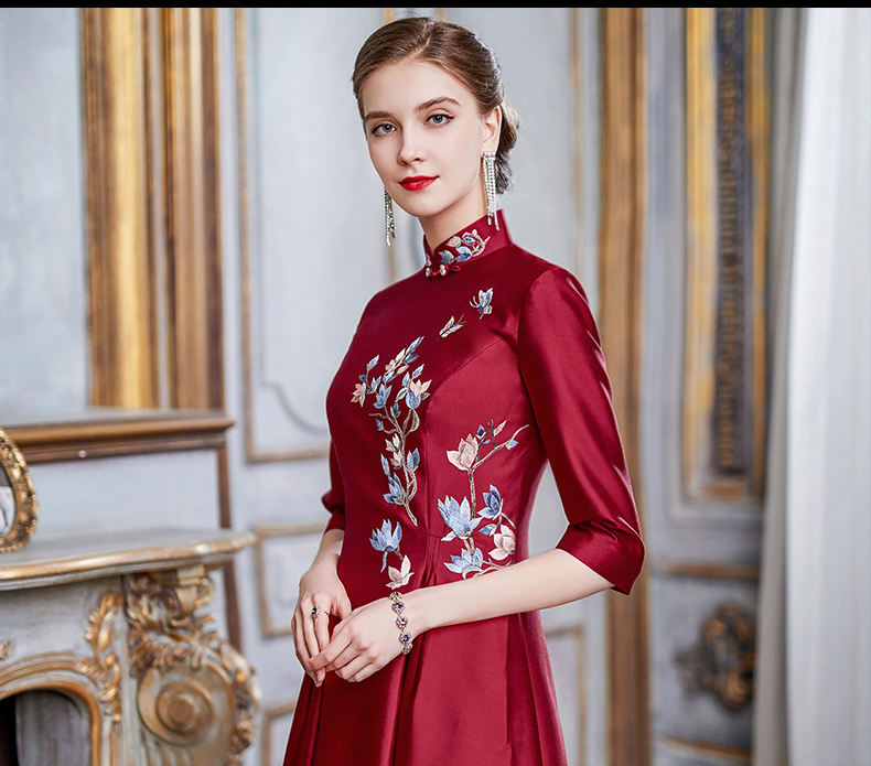 逸红颜古月2021年春季新款真丝礼服裙中长款优雅显瘦气质妈妈旗袍