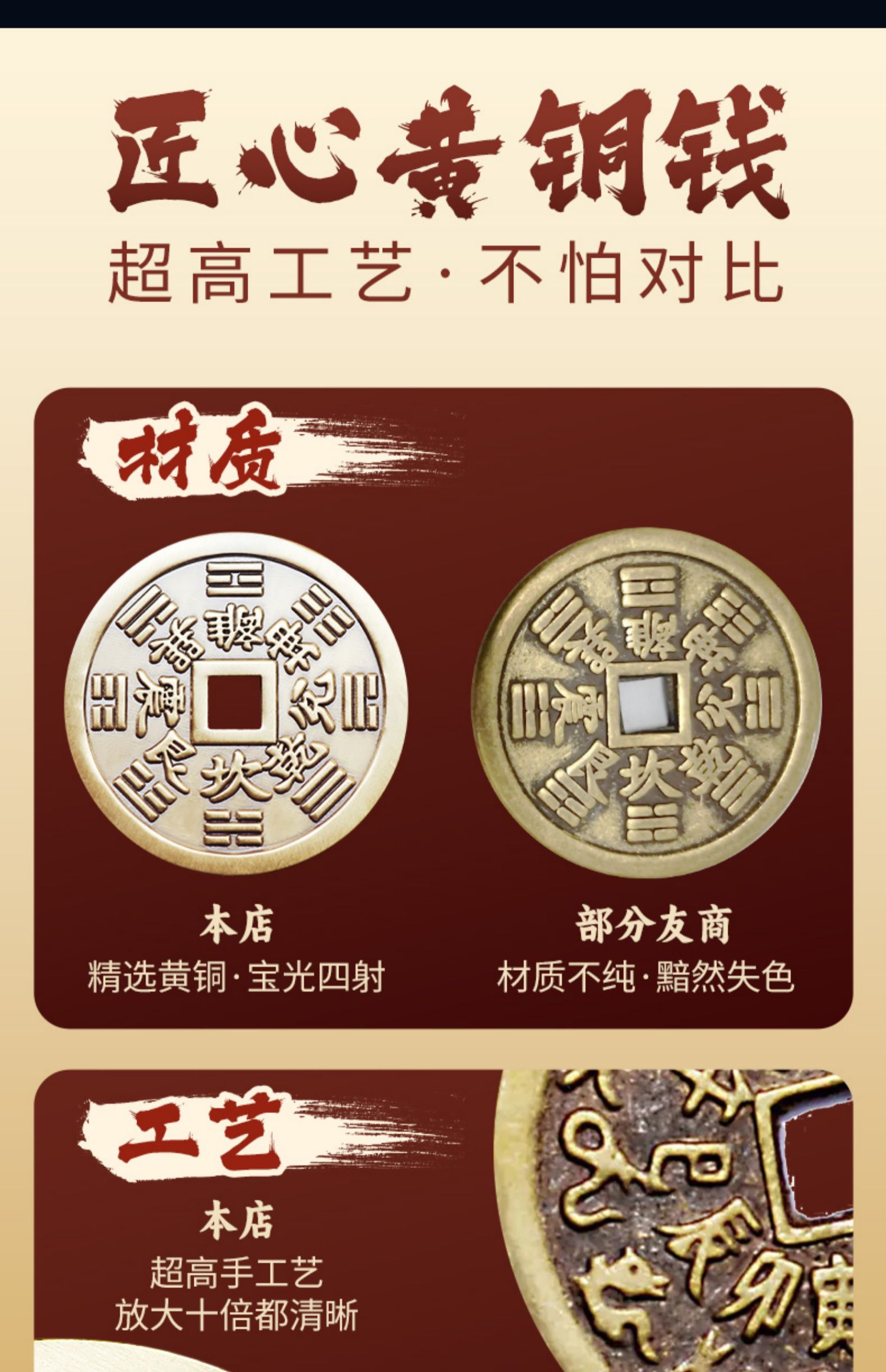 黄铜加大加厚五帝钱挂饰