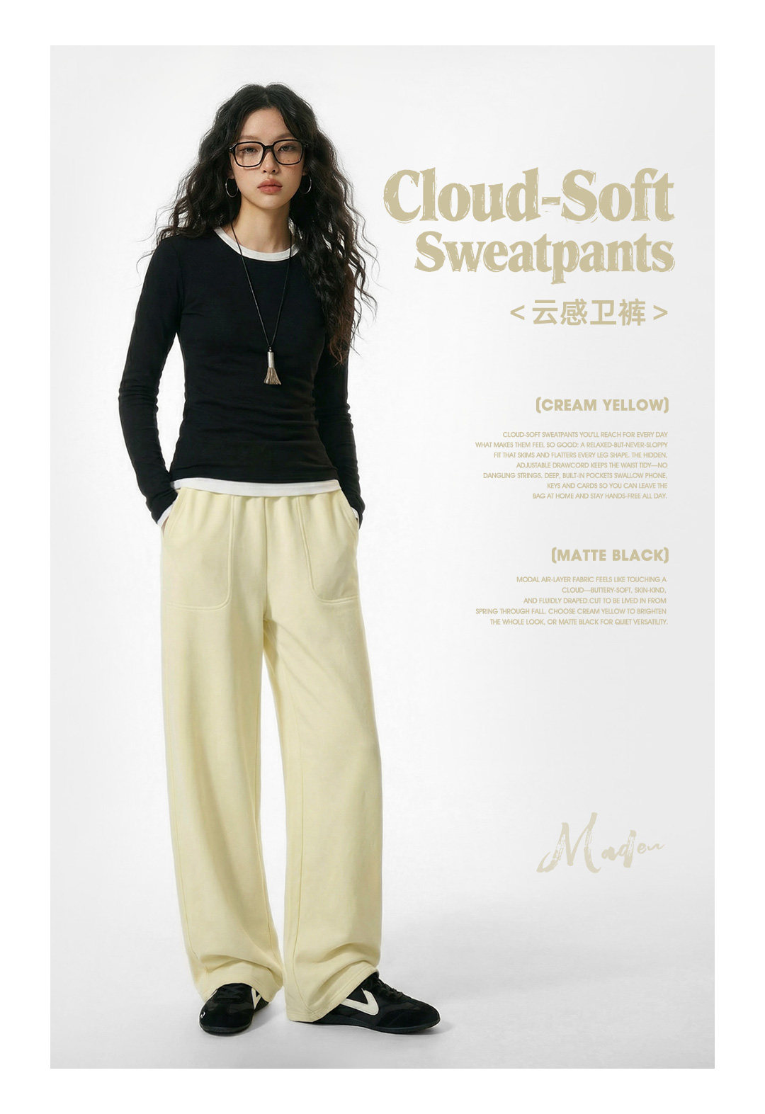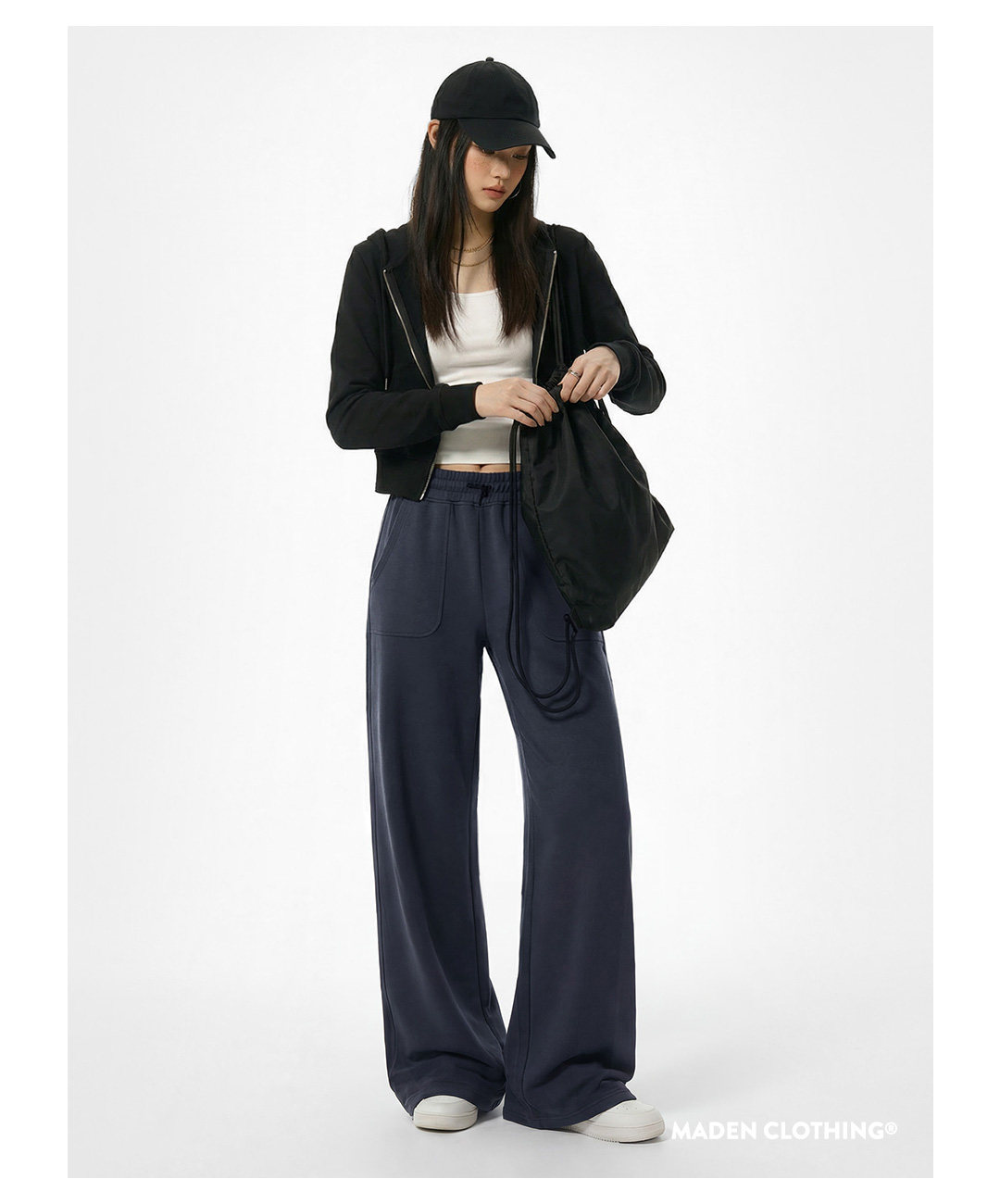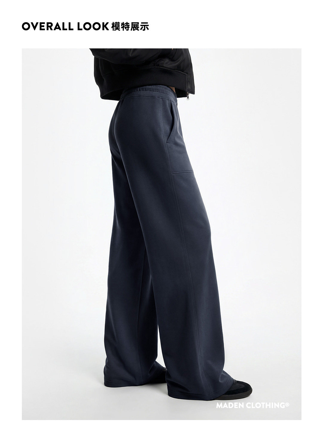 马登黑色窄版直筒阔腿休闲老钱风长裤针织空气层云感卫裤子女士春