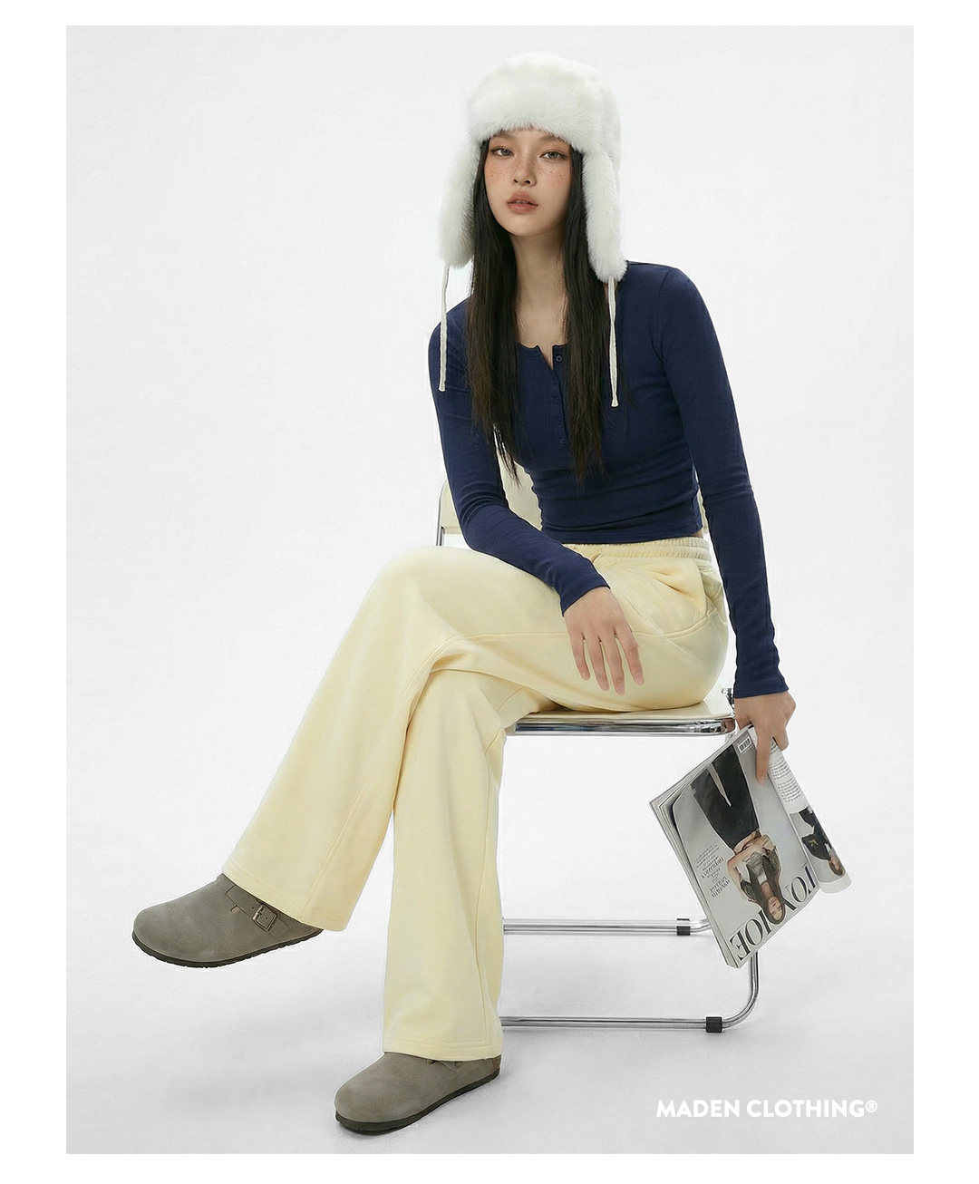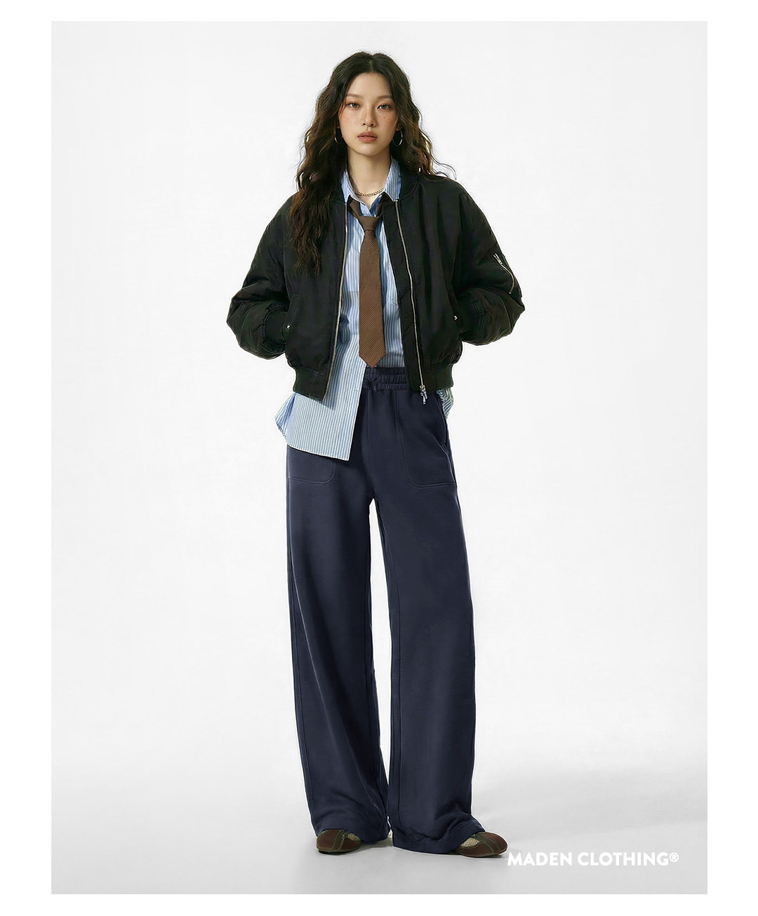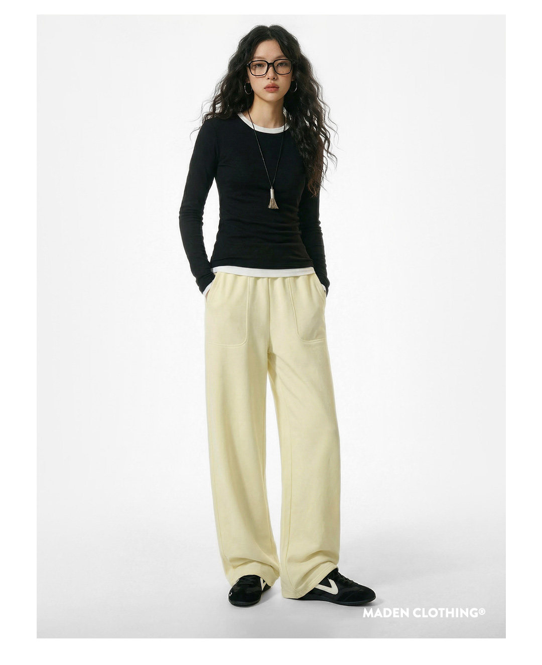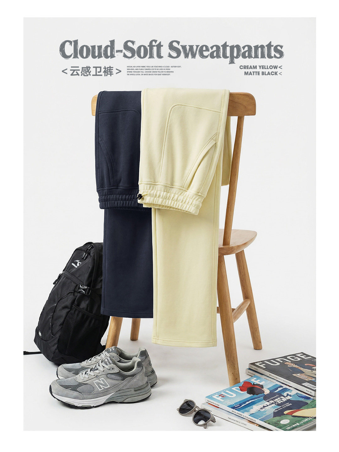 马登黑色窄版直筒阔腿休闲老钱风长裤针织空气层云感卫裤子女士春