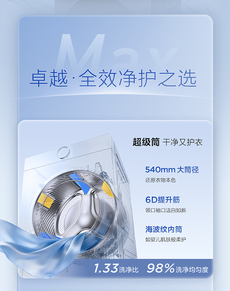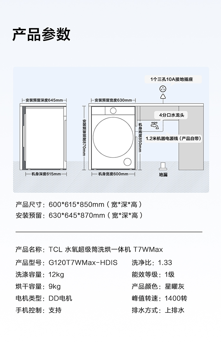 【新品上市】TCL水氧超级筒滚筒洗衣机全自动洗烘一体12KG直驱水氧除菌护衣G120T7WMax-HDIS