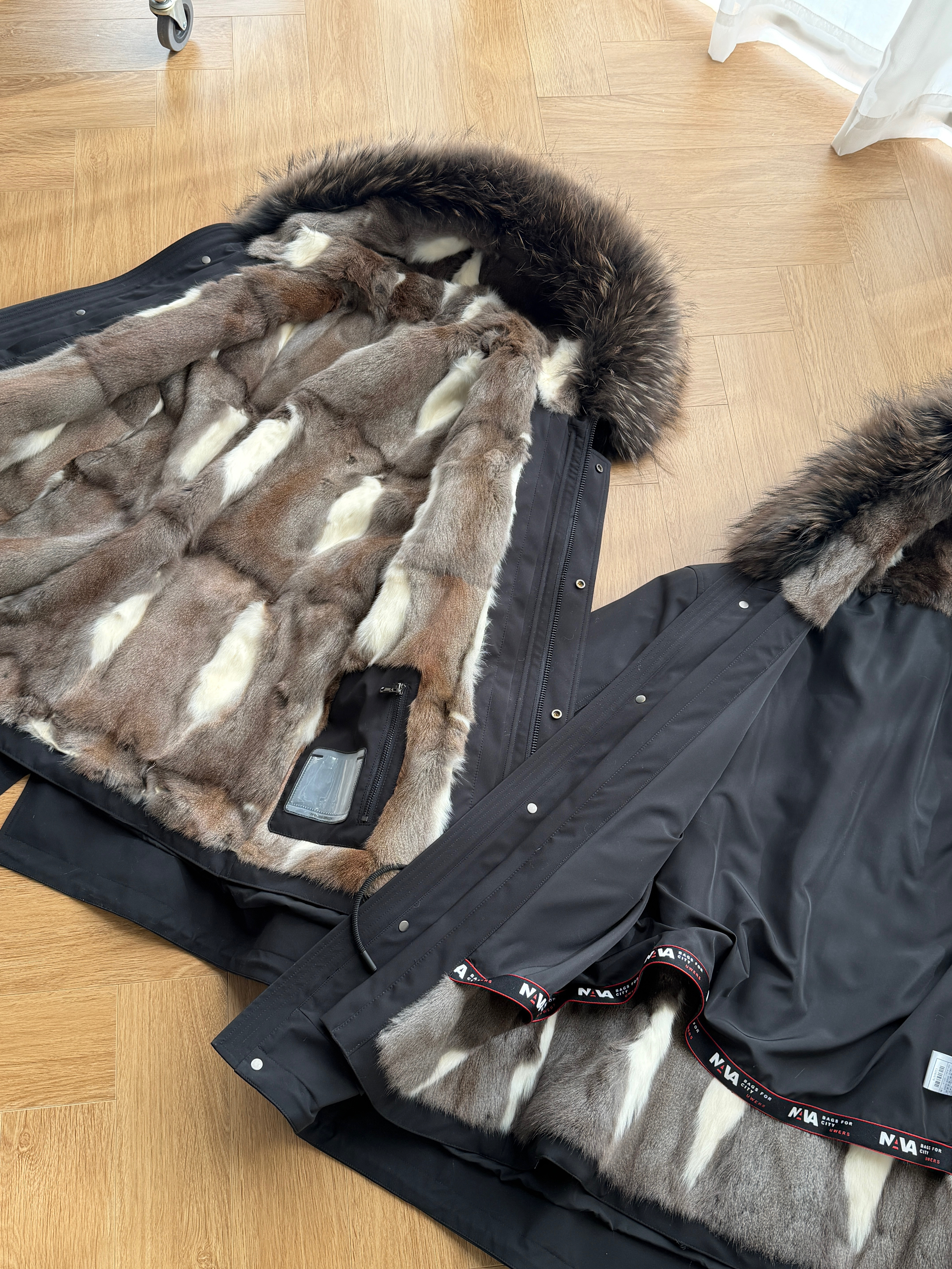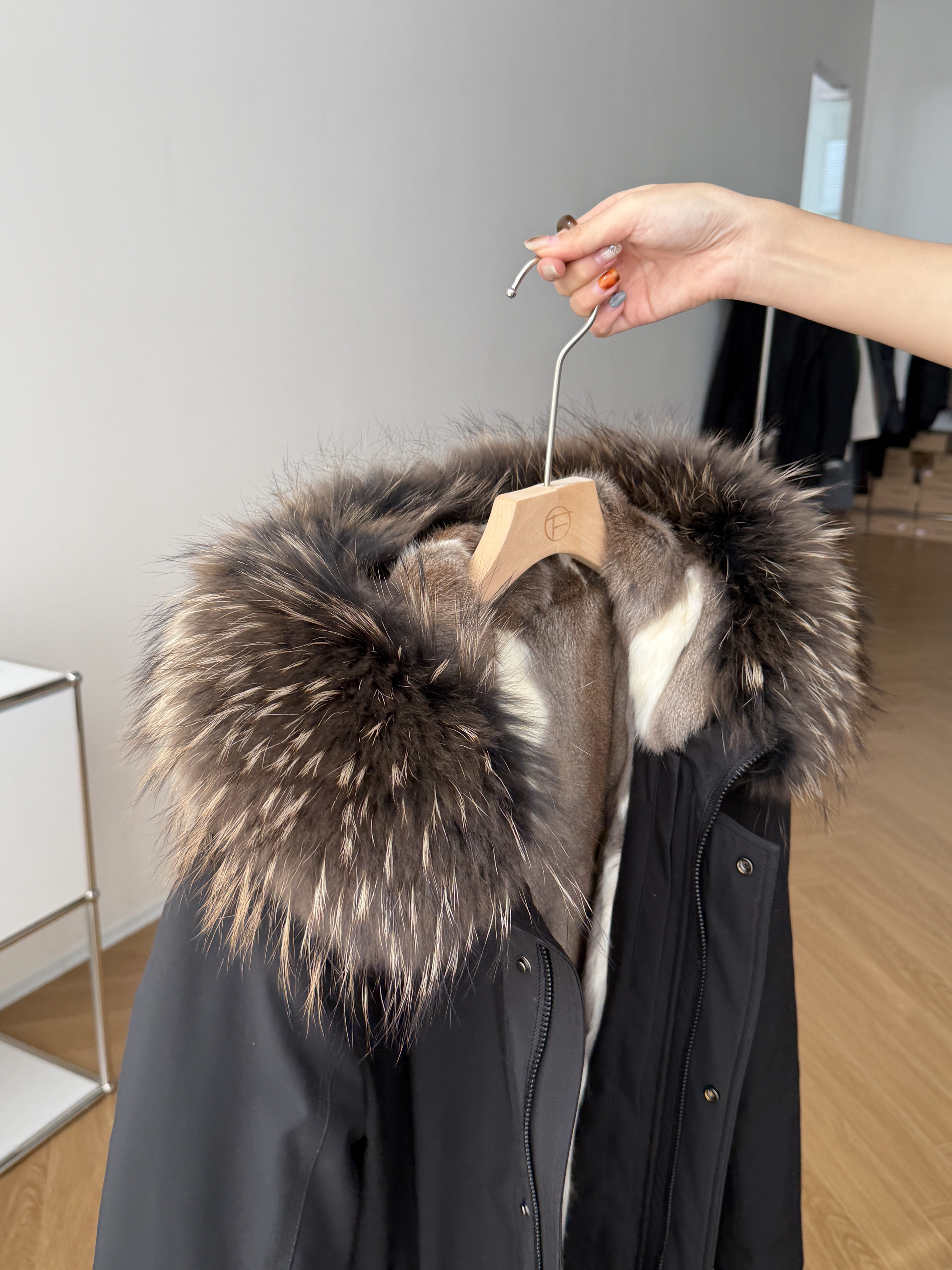 真貉子毛领(真浣熊毛,不掉毛)至少要500,帽子里的也是真貂500 ,