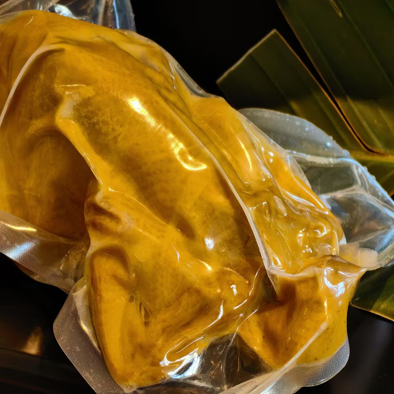 晓寻味客家盐焗鸡,选用家养小土鸡,每一只都经过精心挑选,确保肉质鲜嫩、口感细腻。在烹饪过程中,严格遵循古法,将鸡洗净抹干后再用盐腌制入味,既保留了鸡肉的原汁原味,又使其口感更加醇厚!焗制工艺也很特别,厨娘们将腌制好的鸡用油纸包裹,再用柴火灶将粗盐炒热,当热盐的温度达到最佳状态时,把包裹好的鸡埋入其中,让鸡肉在热盐的包裹下慢慢熟透。这一过程,既保证了鸡肉的嫩滑多汁,又让盐的香味深深渗透到鸡肉的每一个细胞里!