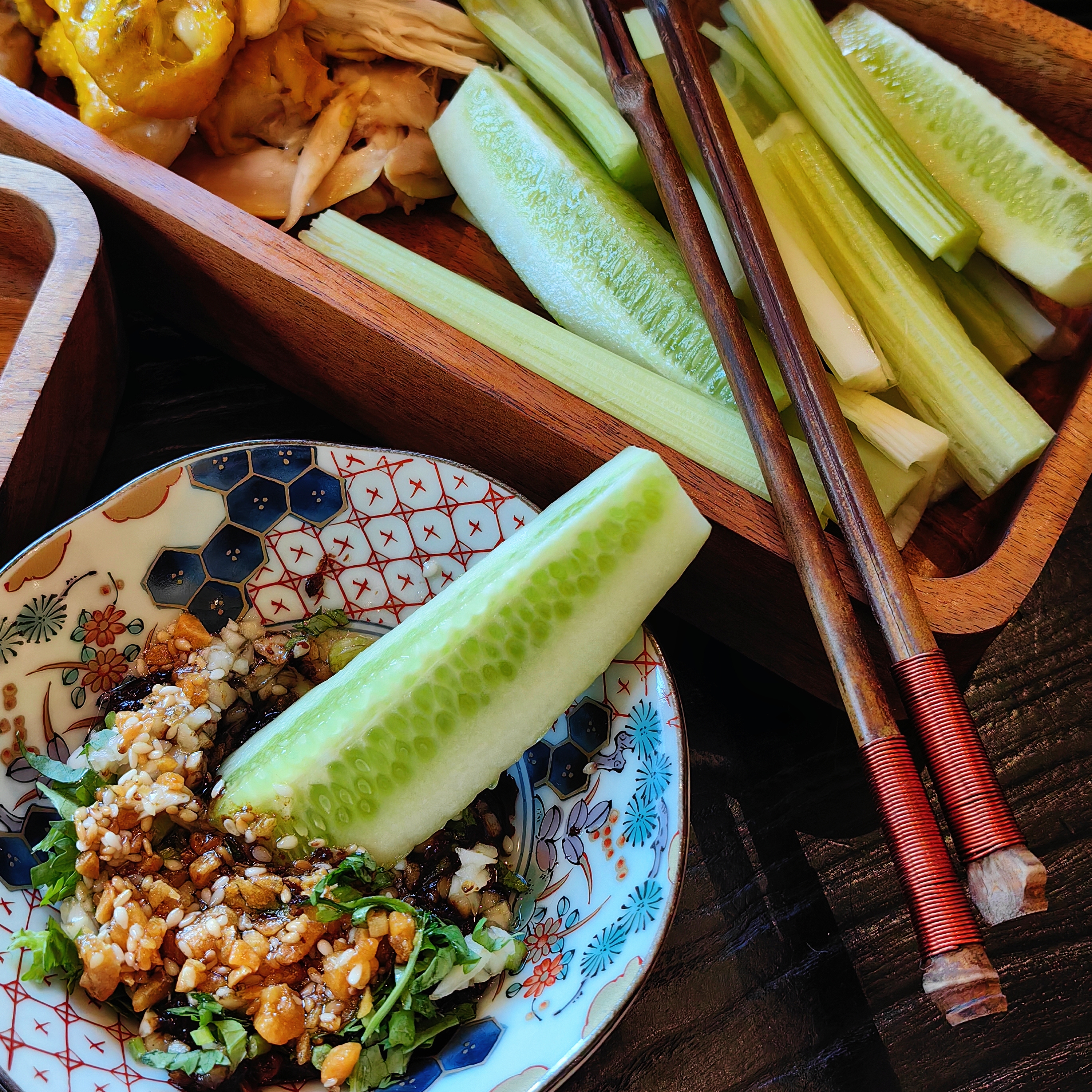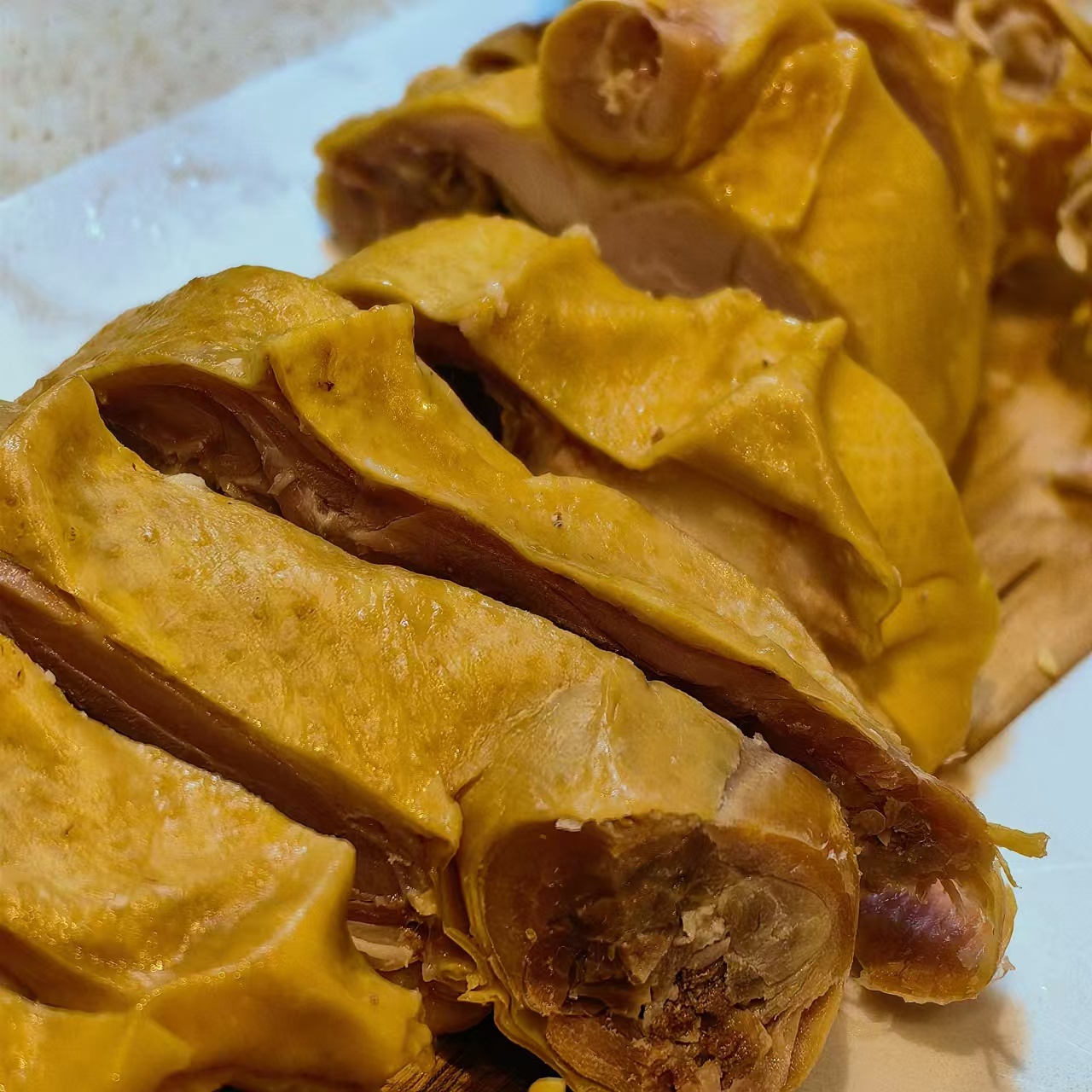 包装蛮简单的,但除了双层包装外,鸡鸡还包着油纸哦,全都去掉后,可以先切块,根据每次的食量分开用保鲜膜装起,近期吃的就放冷藏,不想天天吃就放一部分在冷冻,可以随时享用美味!盐焗鸡直接开啃就很好吃,鸡皮脆爽,骨肉鲜香,鸡肉更是嫩滑多汁,咸度刚刚好,好吃到想连骨头啃!偶尔想换花样,还可以把皮撕开,将鸡肉撕成条条,加入花生、香菜、姜葱,拌成手撕鸡,也是蛮不错!做日常小零食,或者懒得动手做大菜时,配个蔬菜,超快手!