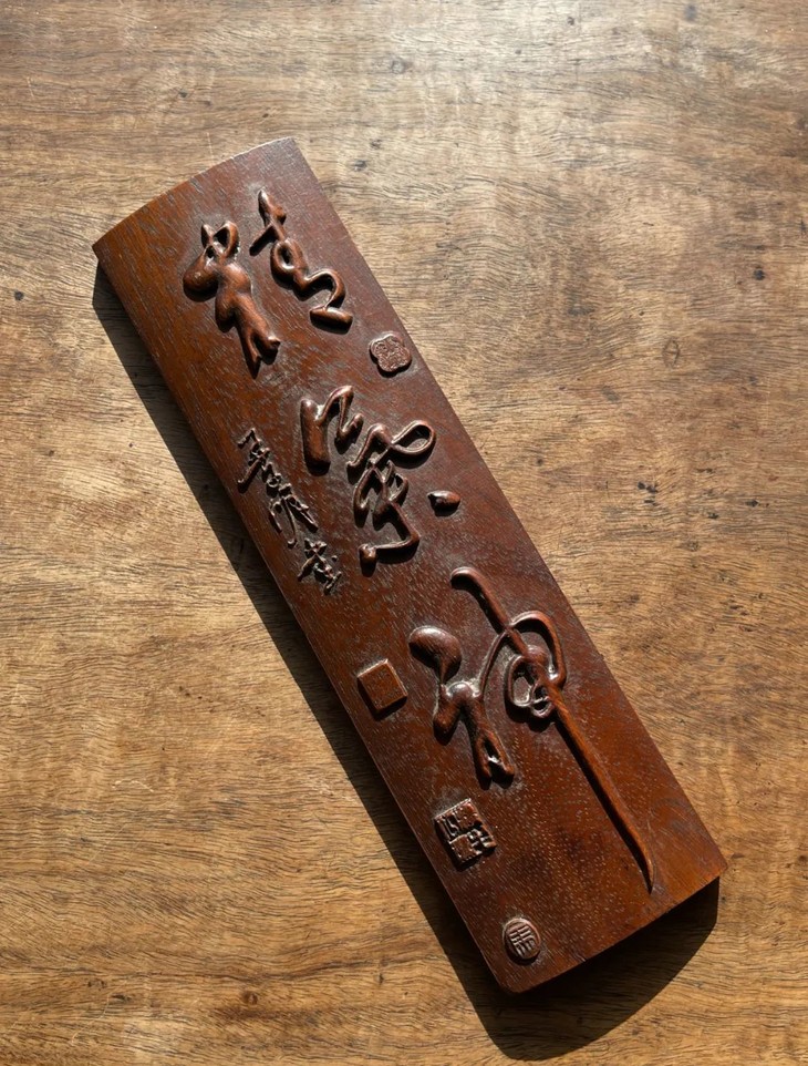 楠木刻字文房臂搁