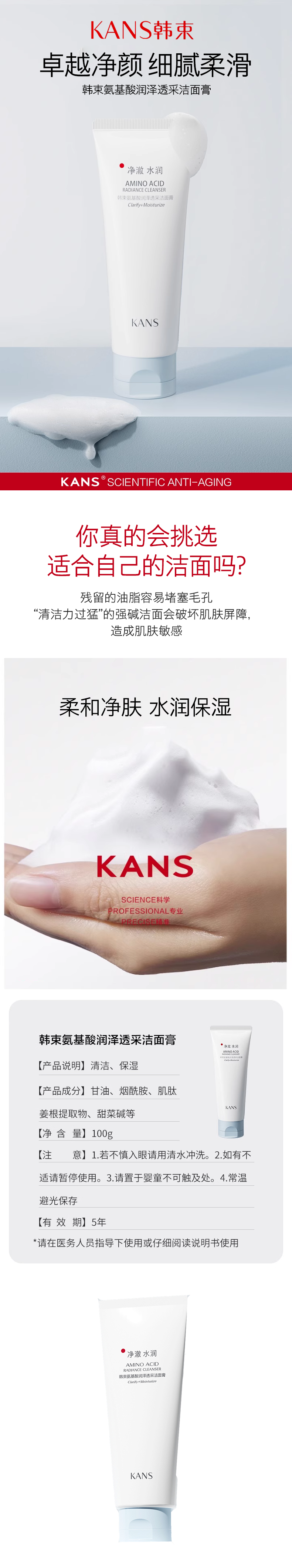 韩束氨基酸润泽透采洁面膏【30173481】