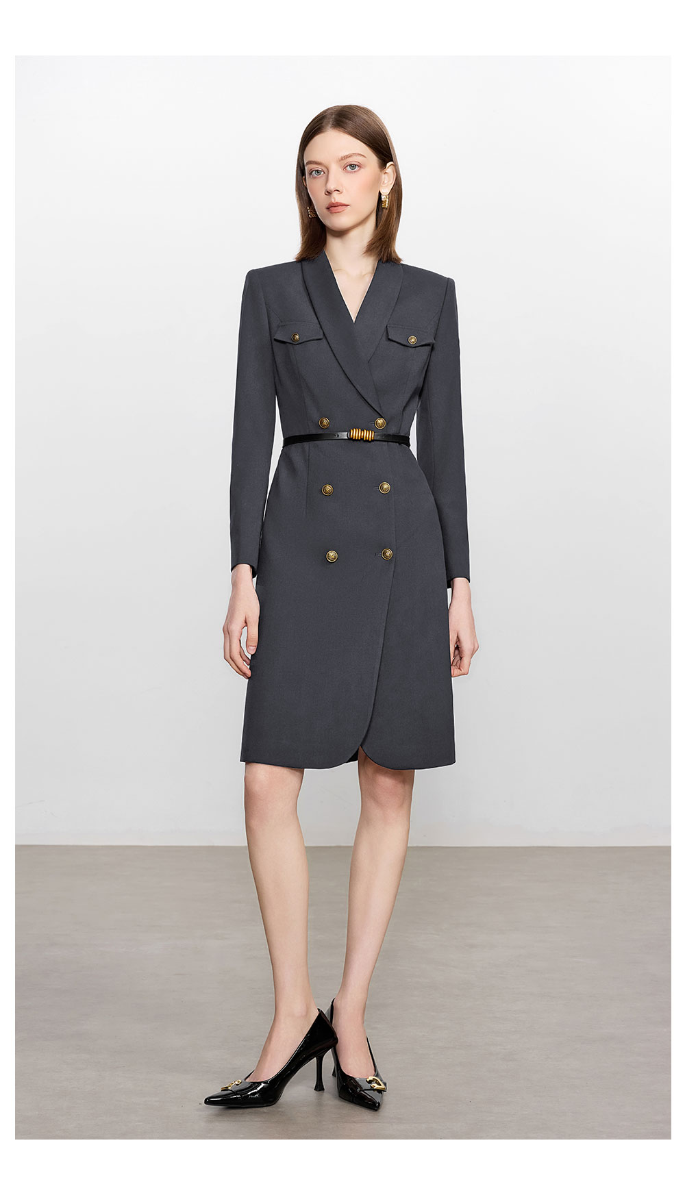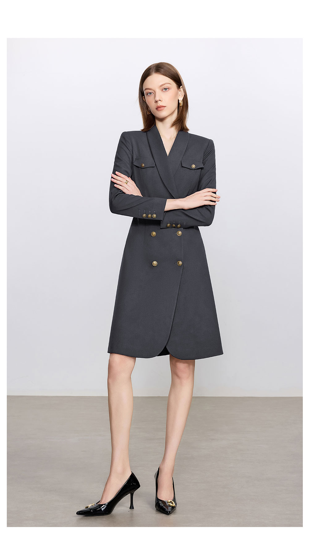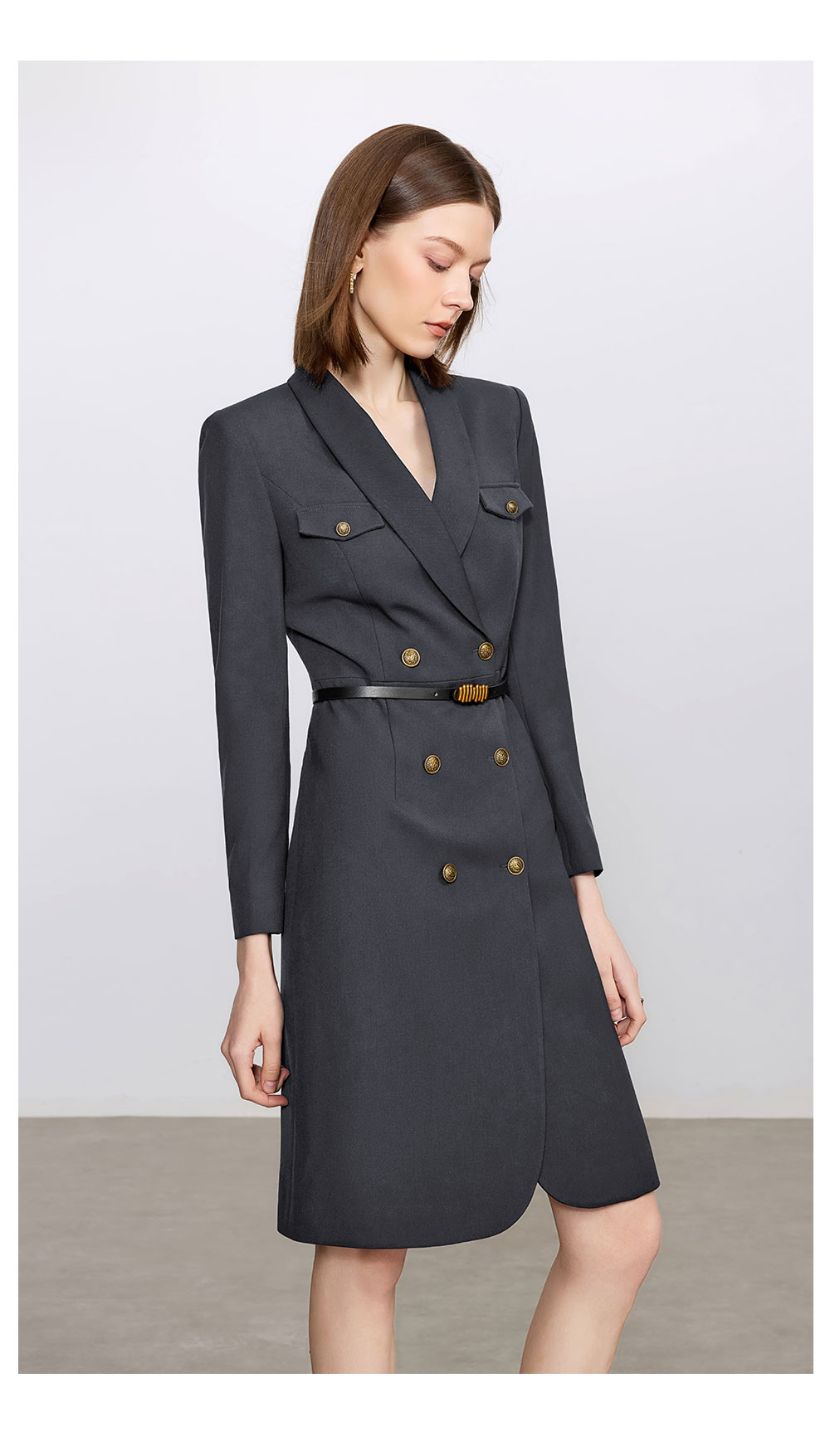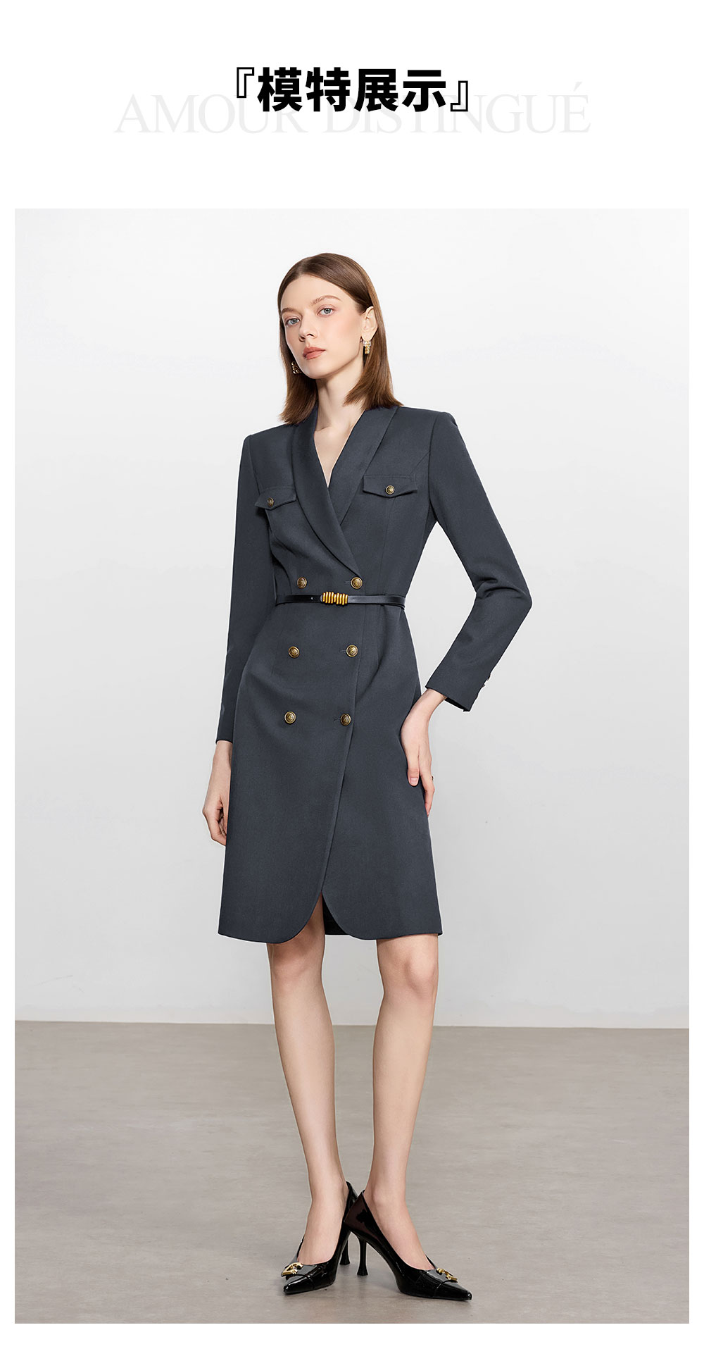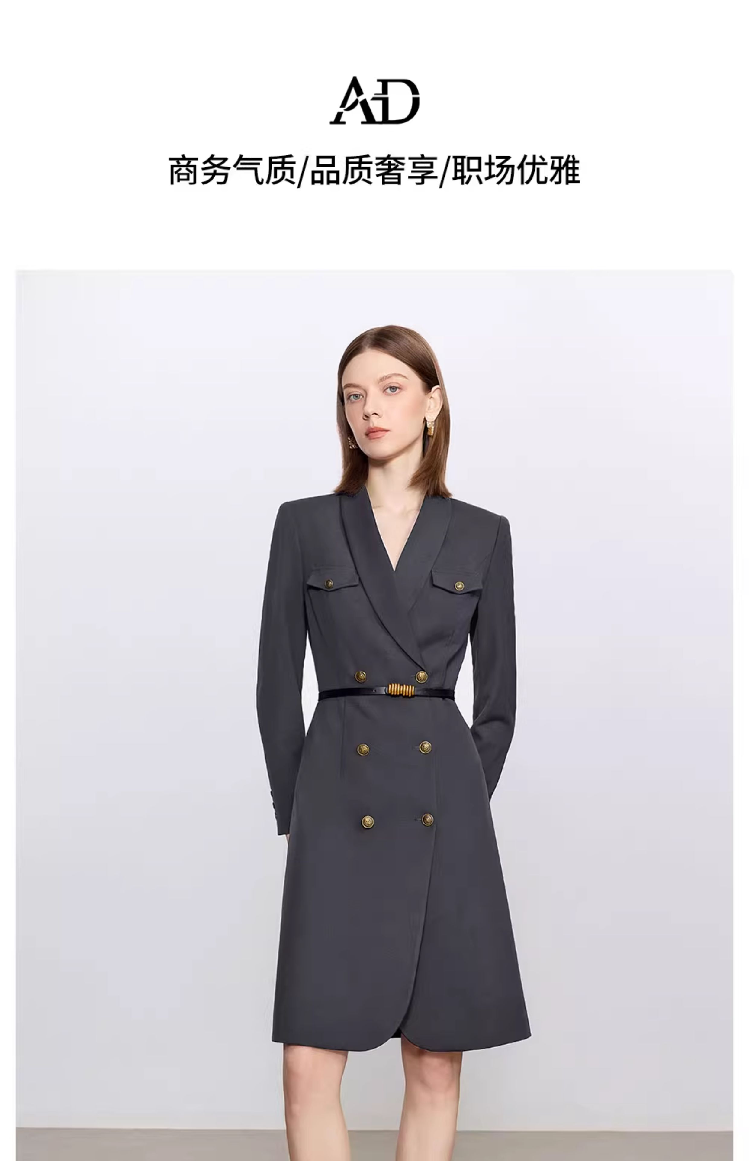 AD灰色羊毛西装连衣裙气质女神范高端职业装西服裙子总裁工作服