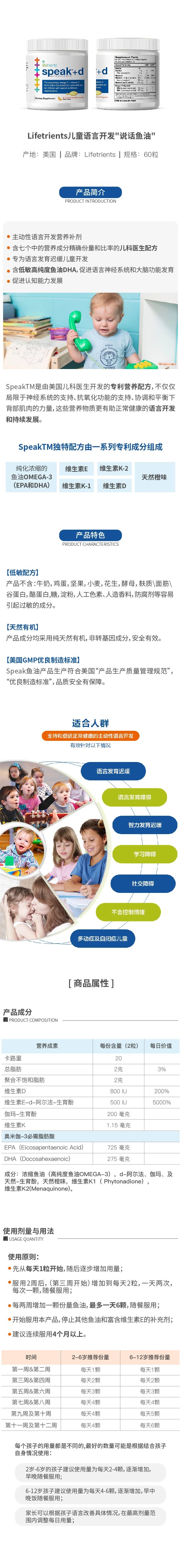 Lifetrients儿童语言开发说话鱼油