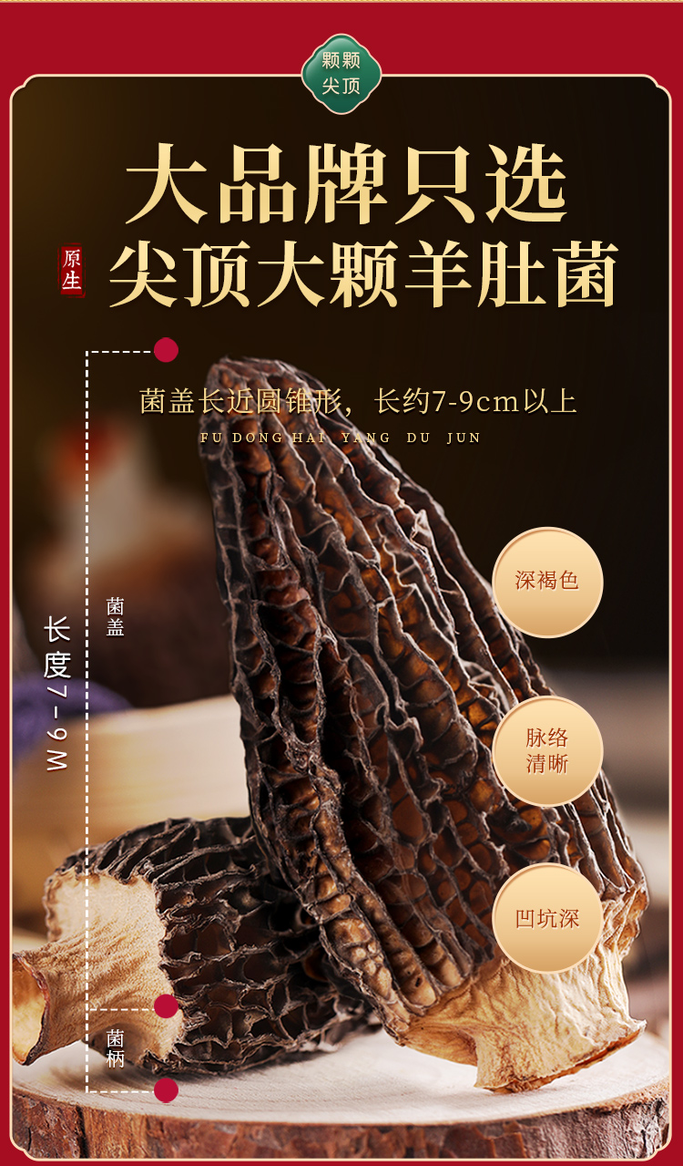 【国庆礼盒】福东海 羊肚菌礼盒装大颗干货煲汤食材松茸伴侣送礼佳品70克