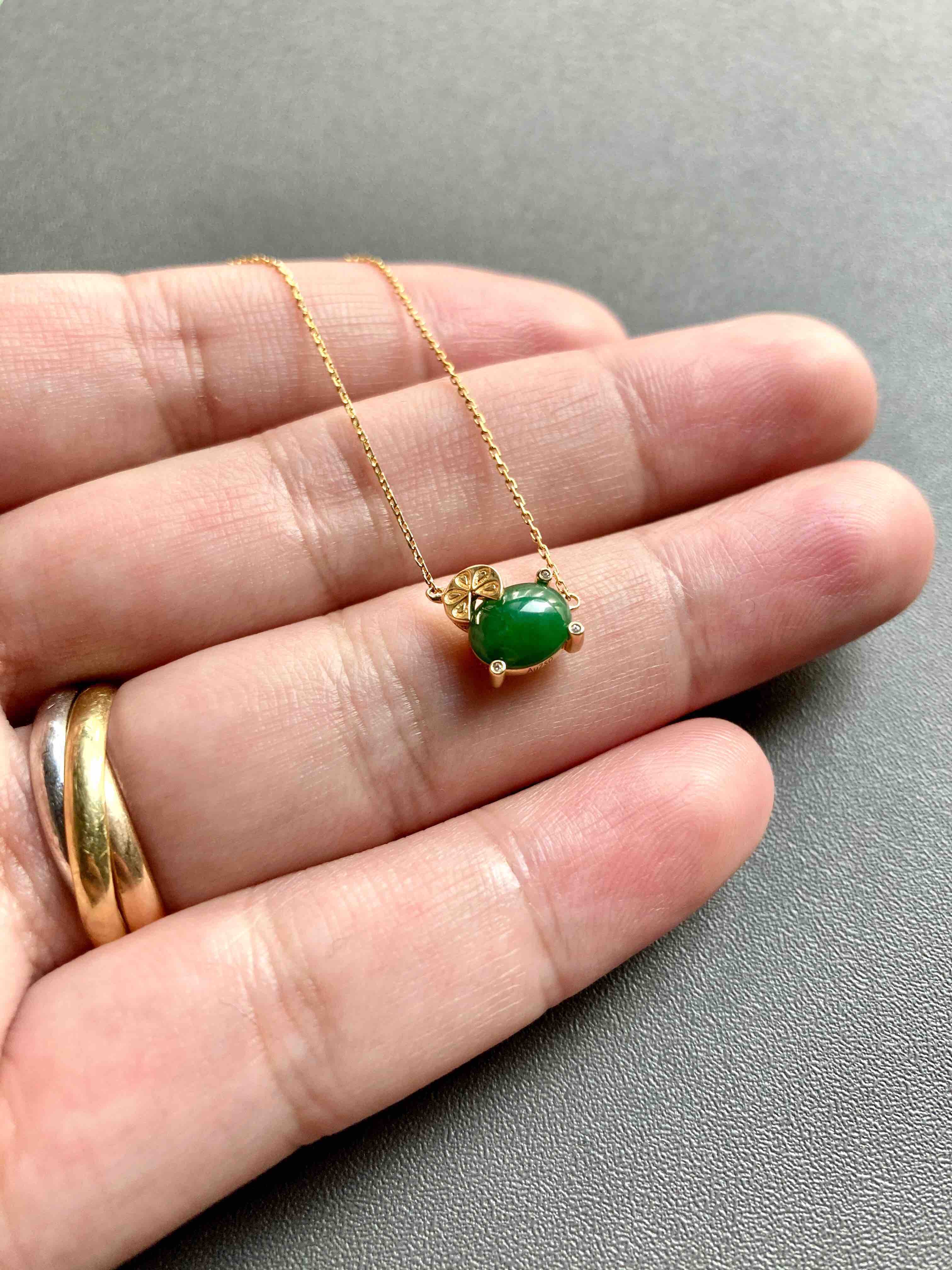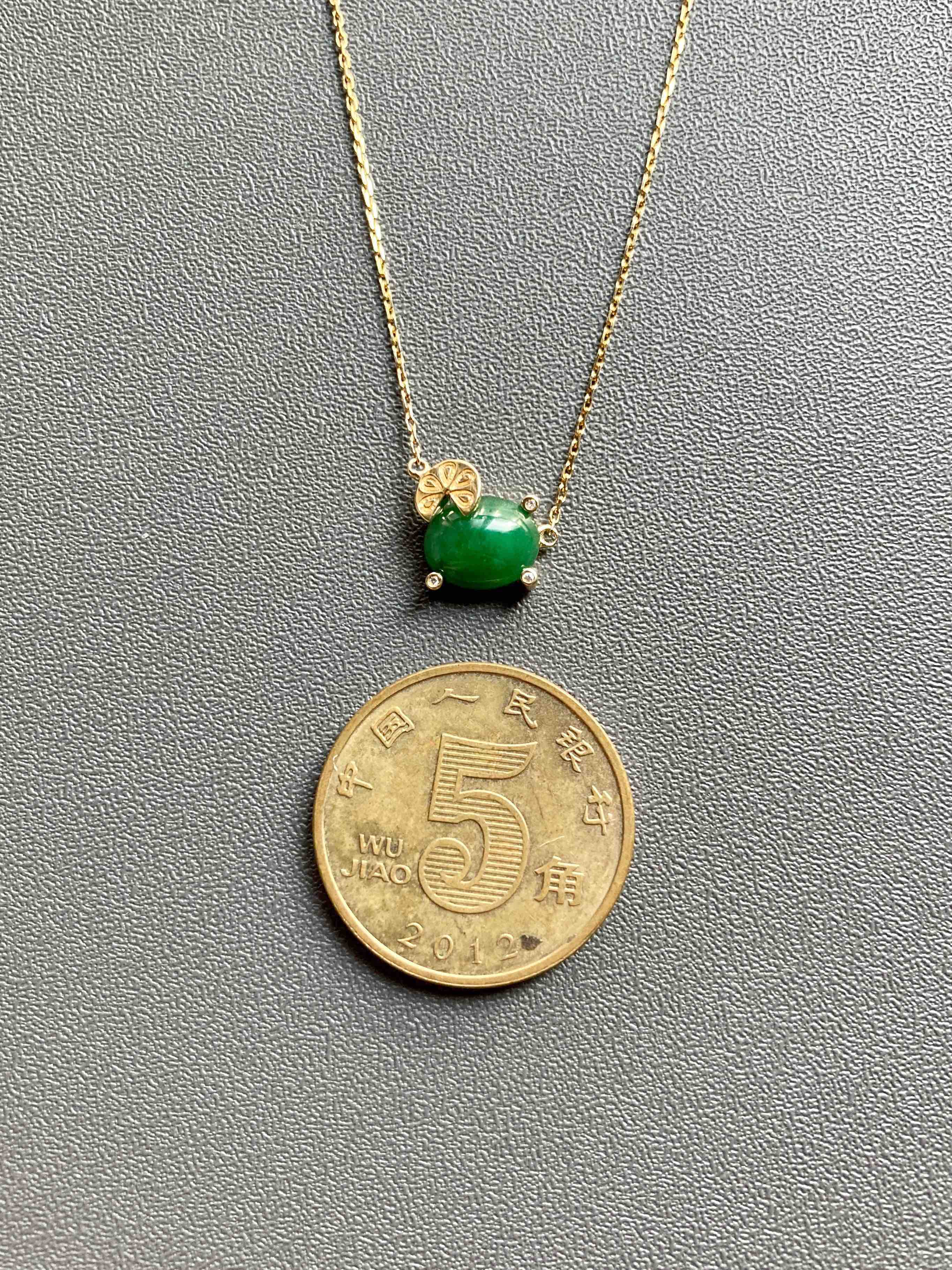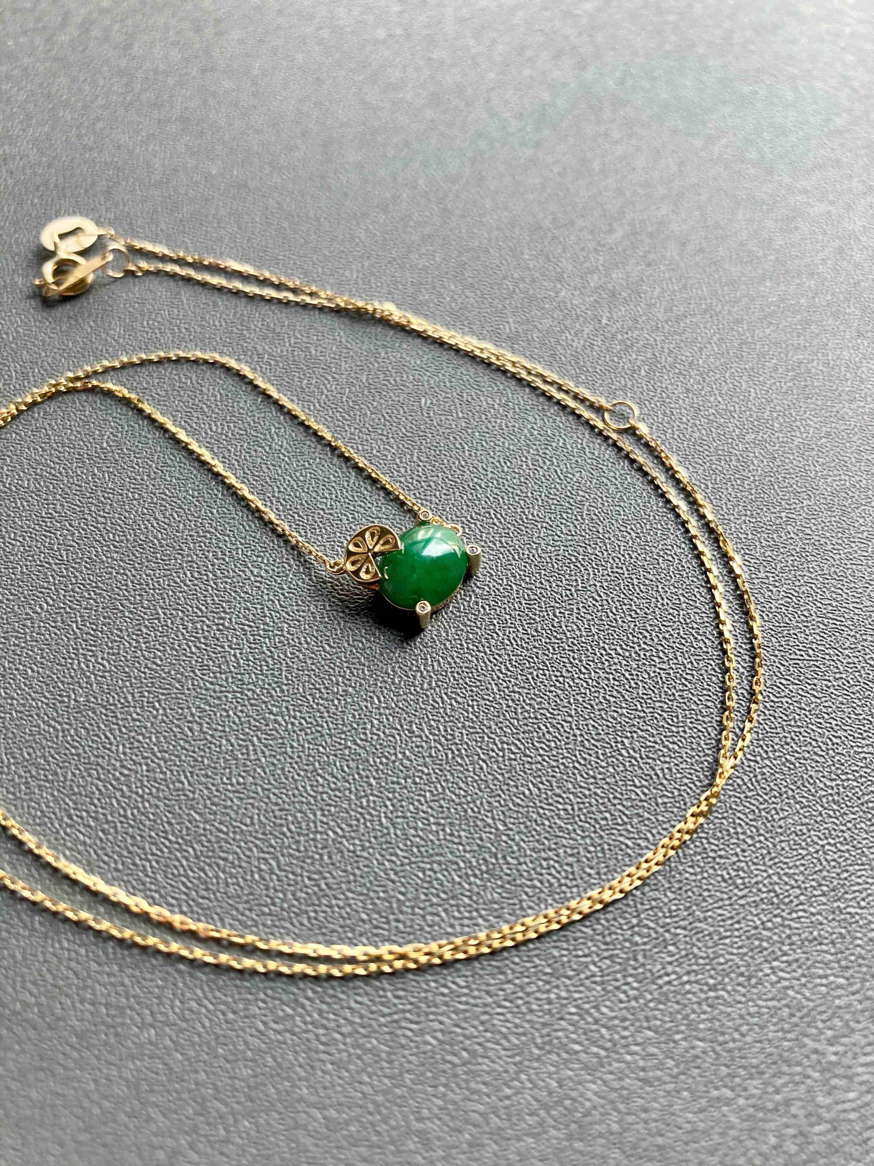 糯冰种浓绿翡翠蛋面锁骨链18k黄金钻石镶嵌