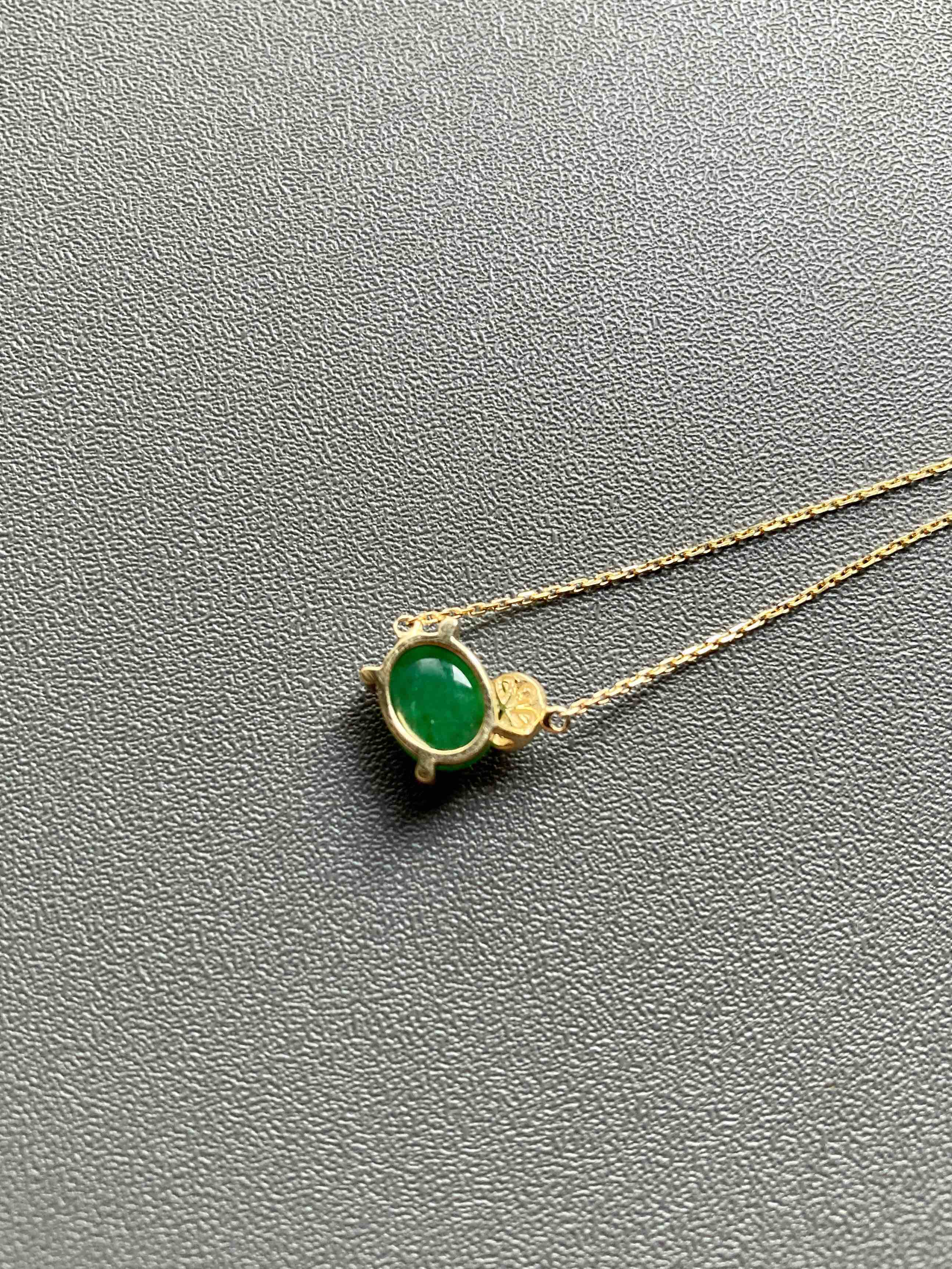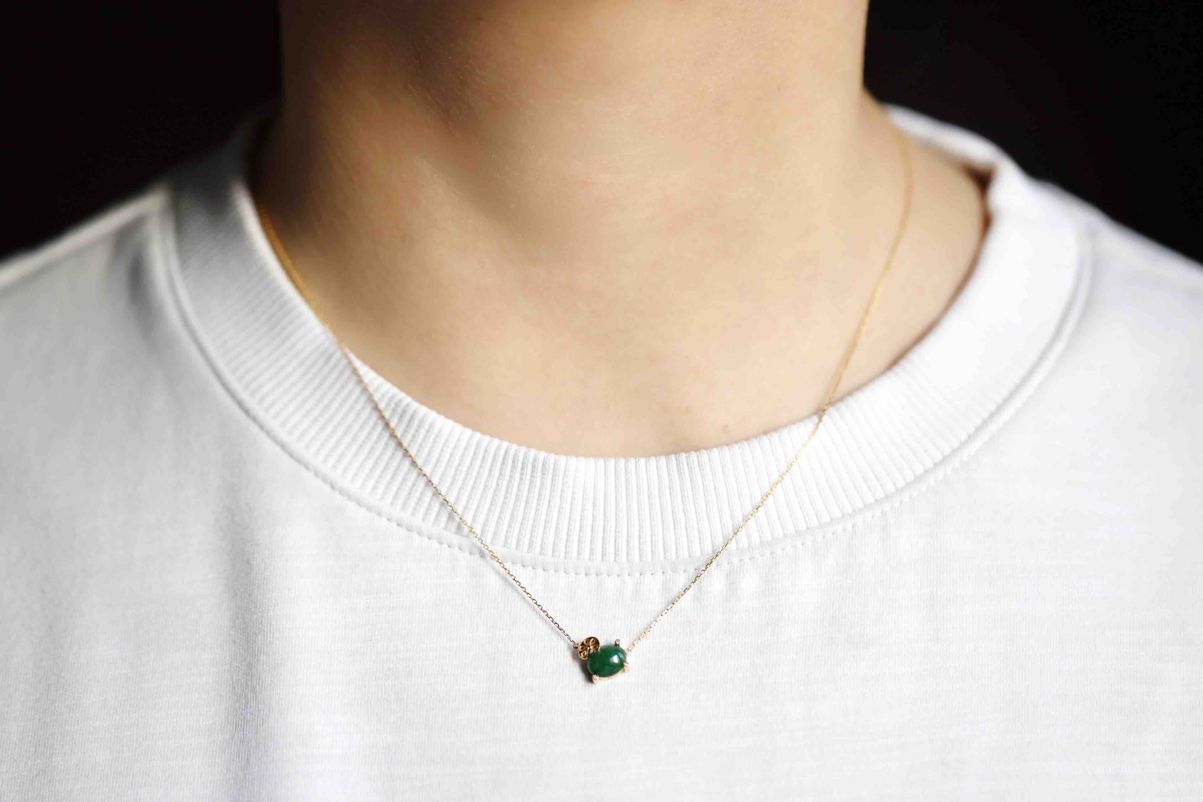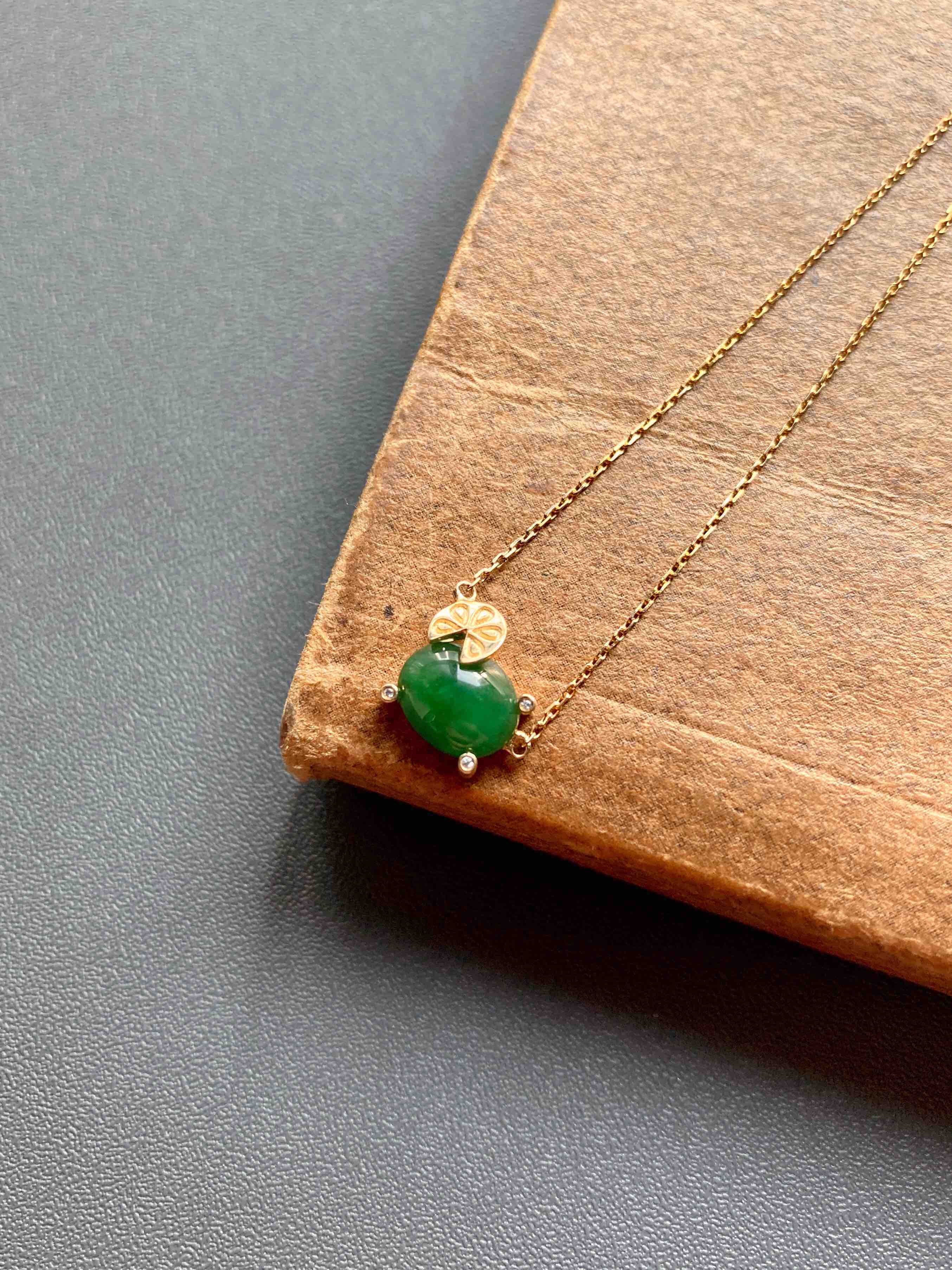 糯冰种浓绿翡翠蛋面锁骨链18k黄金钻石镶嵌