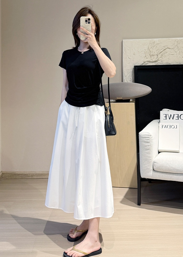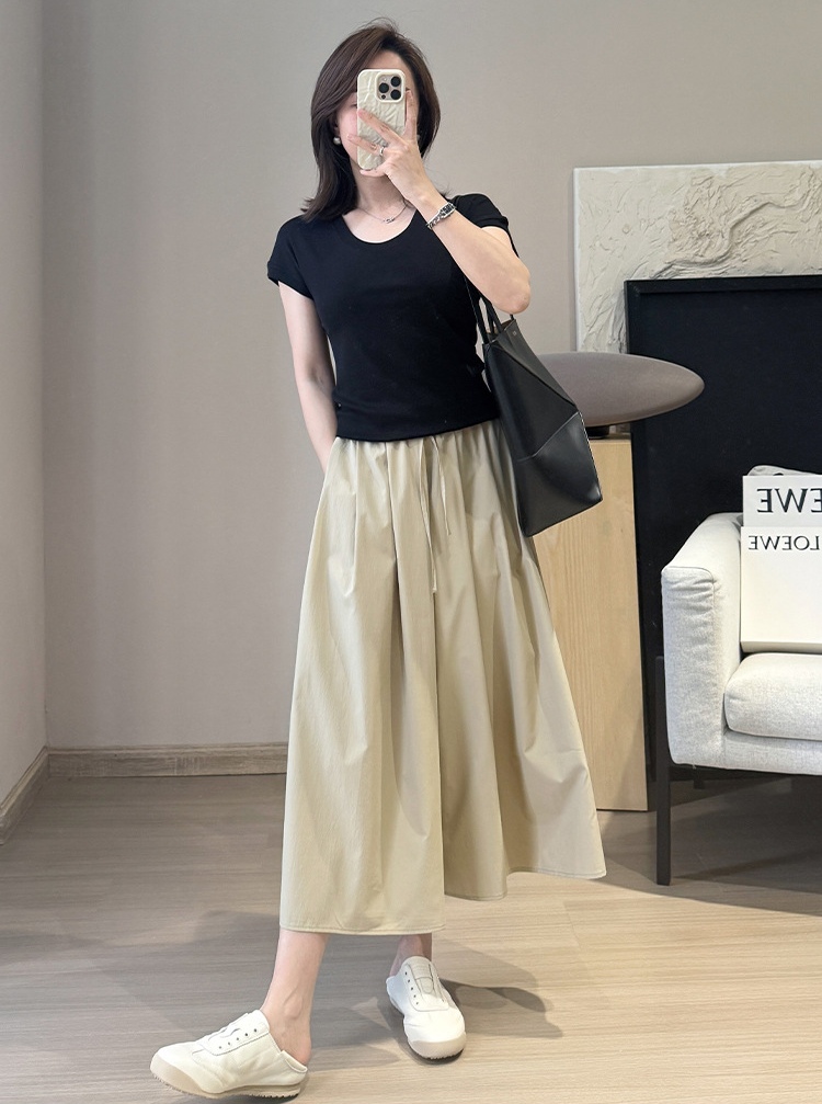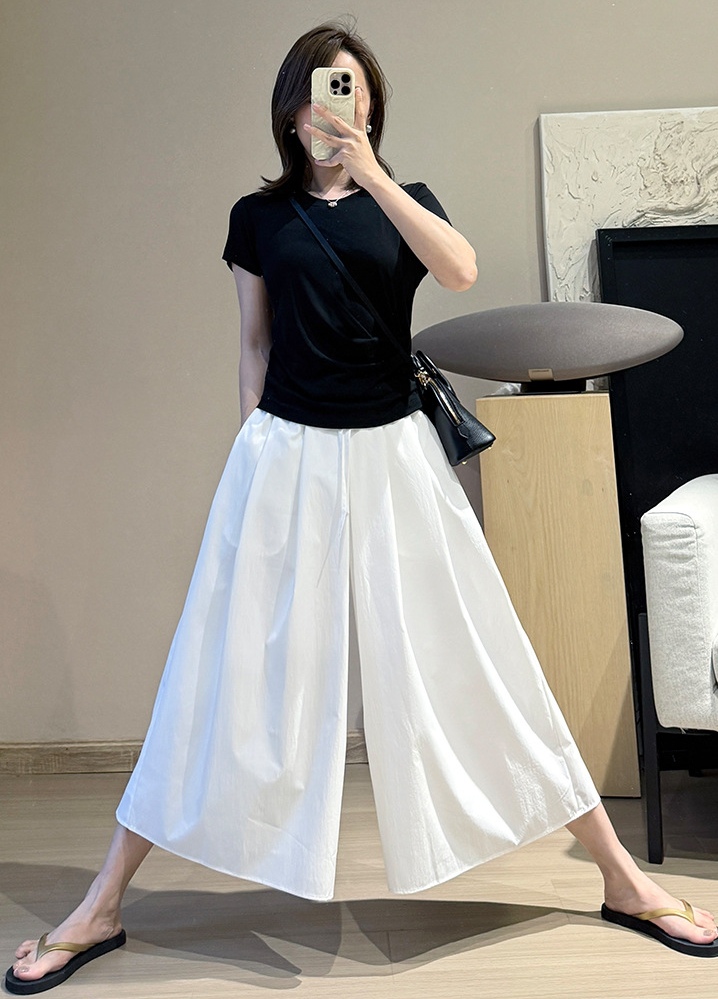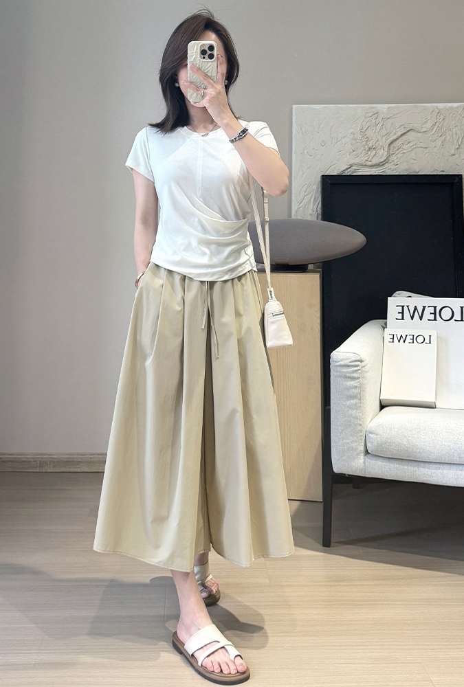 八分长适合所有身型的朋友。穿着像裙子,实际是裙裤,白色防透加了内衬,卡其和黑蓝无内衬。