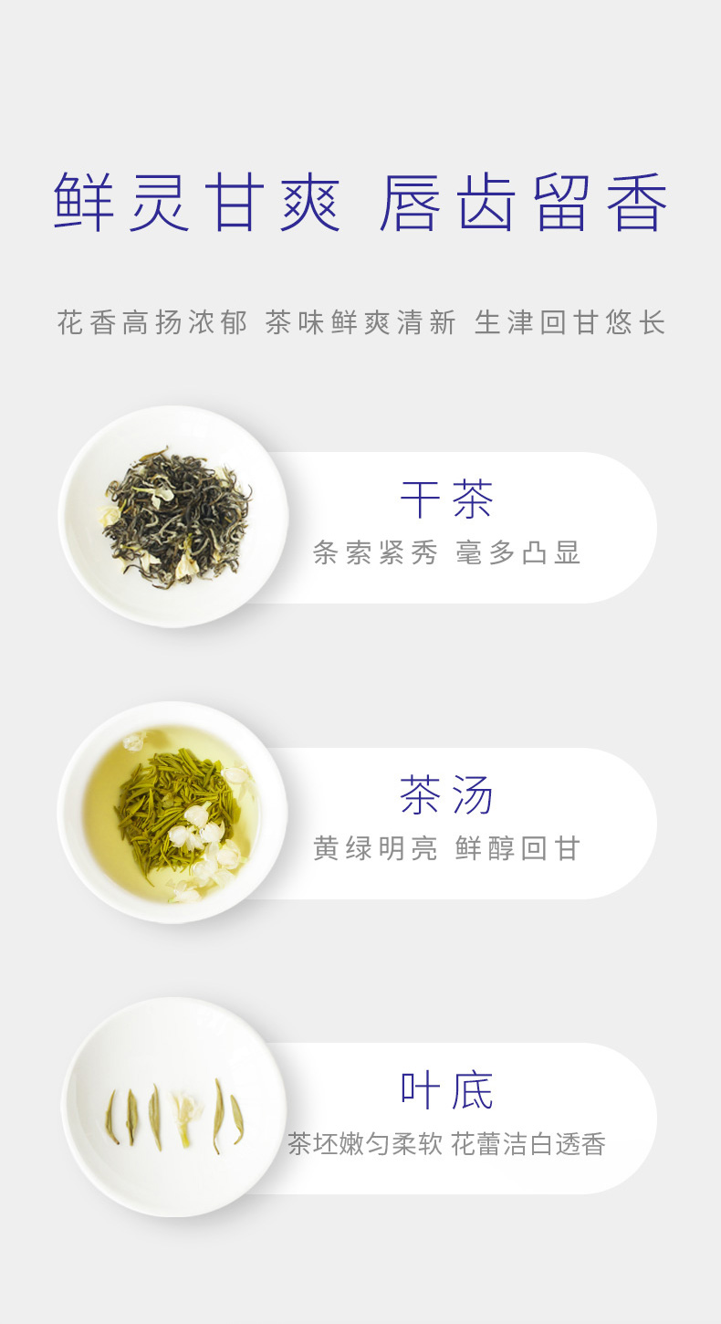 中国制茶大师徐金华(徐公)传承 古方制作技艺 开创新派茉莉花茶 精选峨眉高山明前春茶 配以广西横县双瓣茉莉 花与茶,黄金配比 时间酝酿,层层历练 花香与茶香交融 盖碗之间 仿佛茉莉花在舌尖绽放