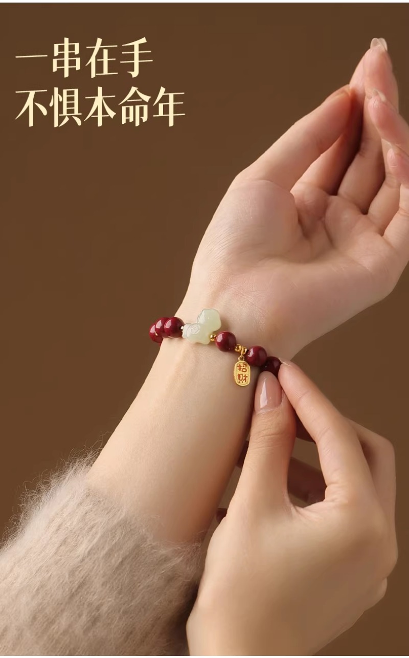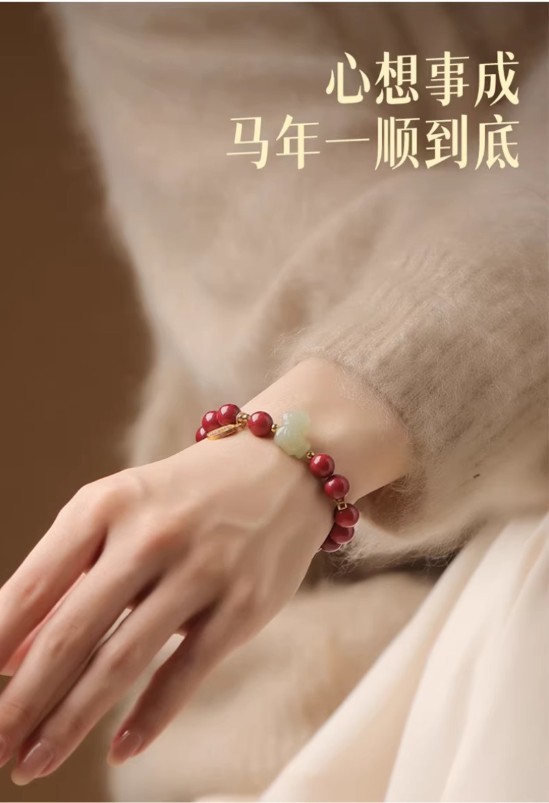 六鑫珠宝 2026玺晶级天然和田小马红朱砂手串