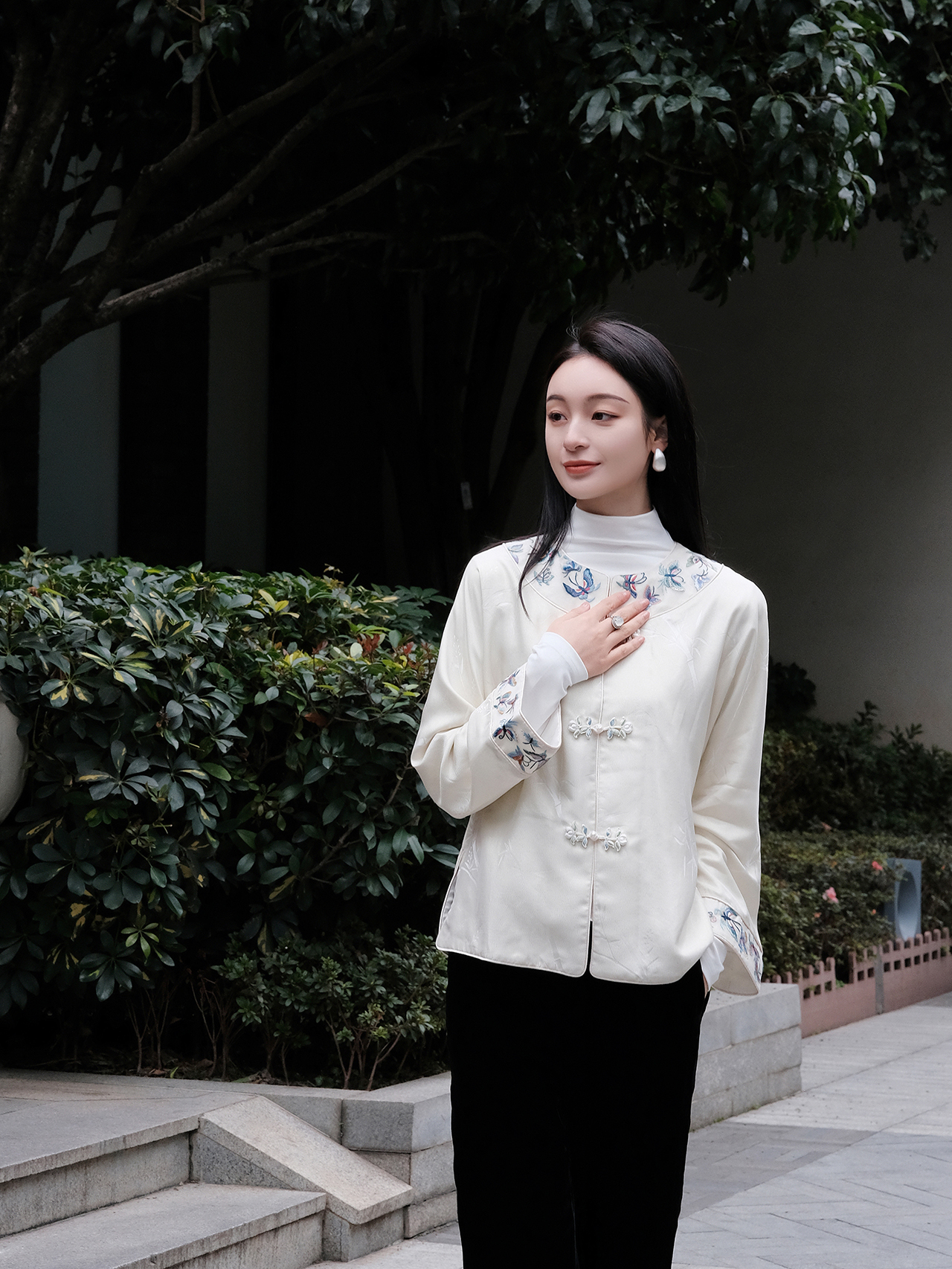盛唐牡丹 |真丝蝶恋花女上衣-半丝[特价品]