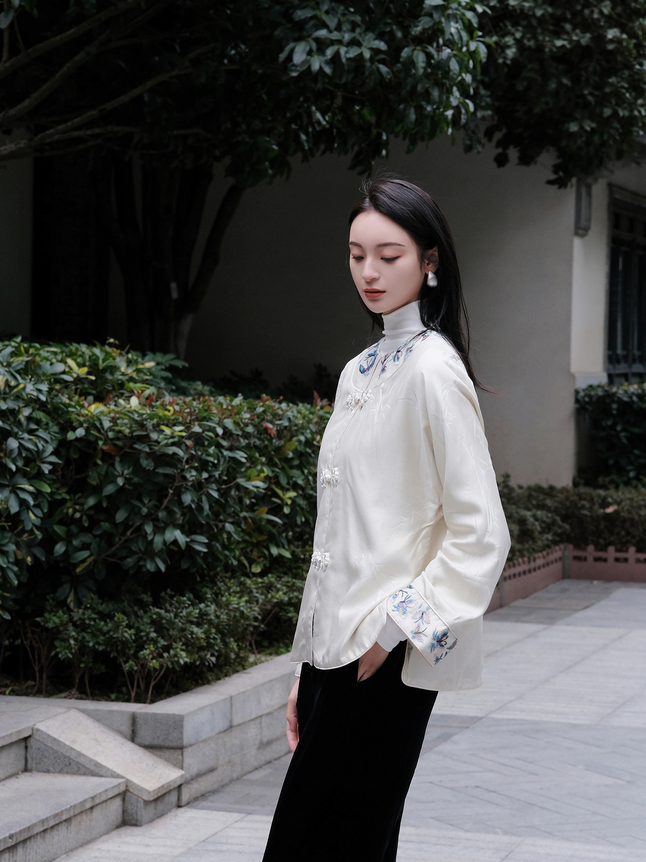 盛唐婧 |淡翠绿国风提花上衣[特价品]