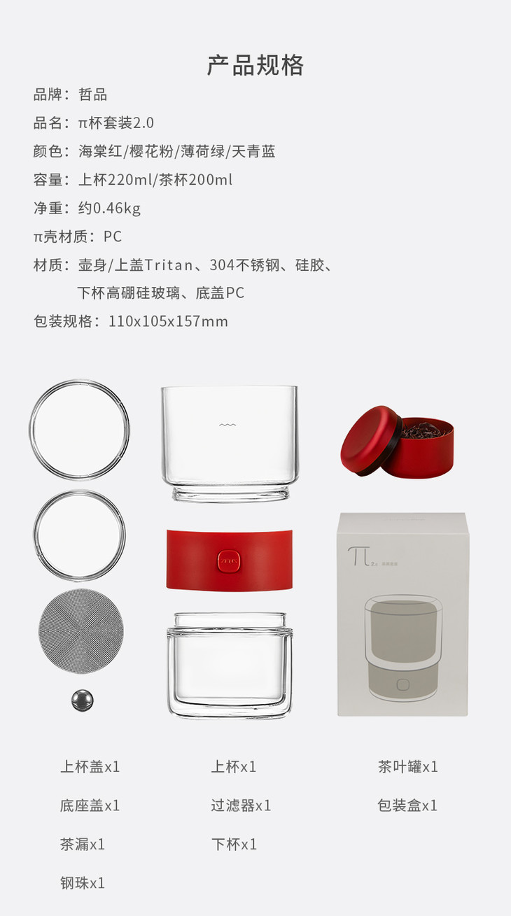 哲品 派杯3.0配件高硼硅玻璃双层茶杯 单层壶身 (如不清楚可联系客服咨询)