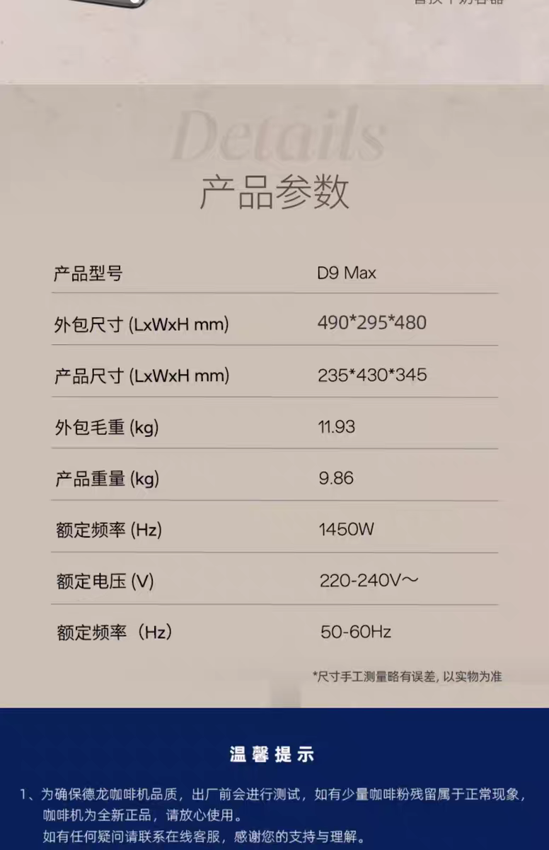 【云粉节】10楼 德龙 新款咖啡机原装进口D9 Max 吊牌价13800元 活动价11000元