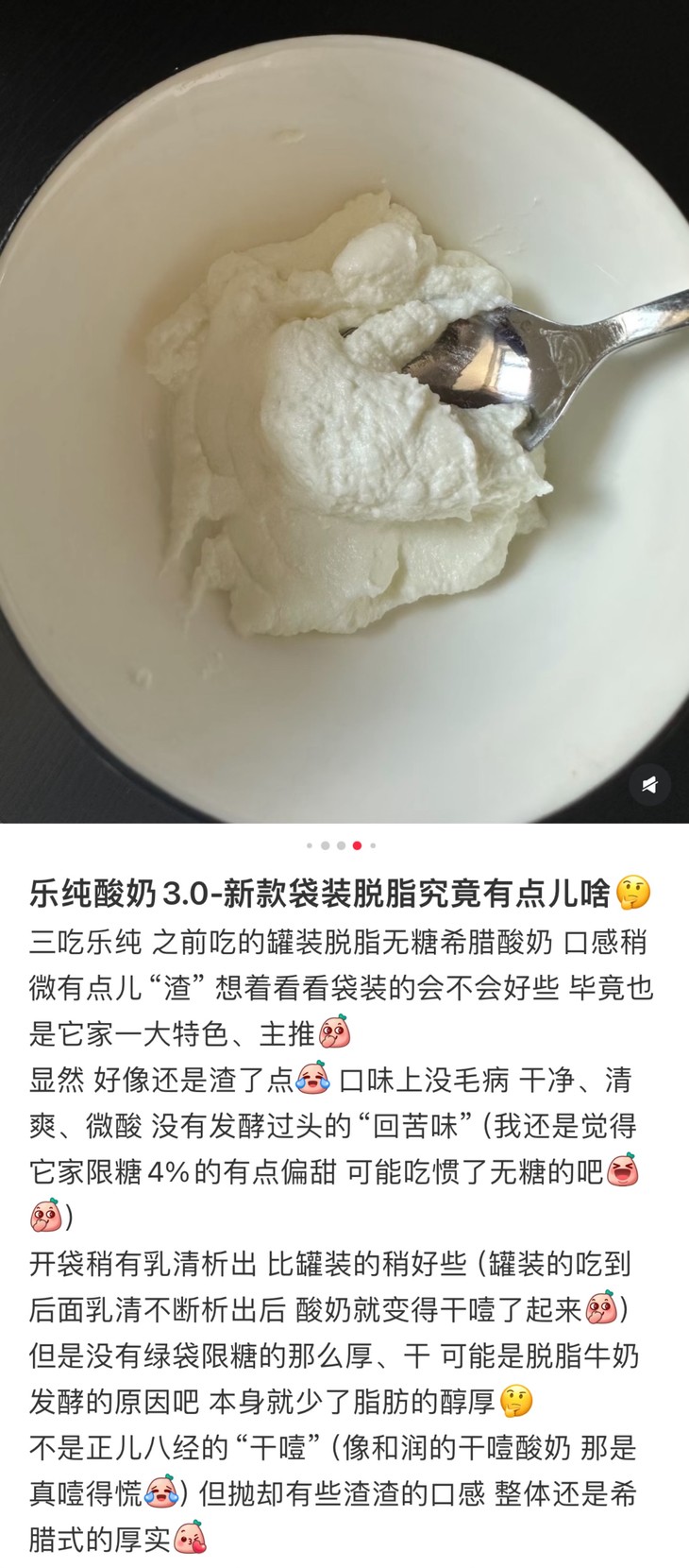 乐纯希腊酸奶Pro大师装来啦,我真的找了很久,是不用过滤的,厚厚干干,香香浓浓!包装很赞,挤一挤就行,在有效期内随时都能放心吃,黑版特浓有一侧还可以打开,用来调铁镁宝、蓝莓粉和燕麦苗什么的,更方便了!