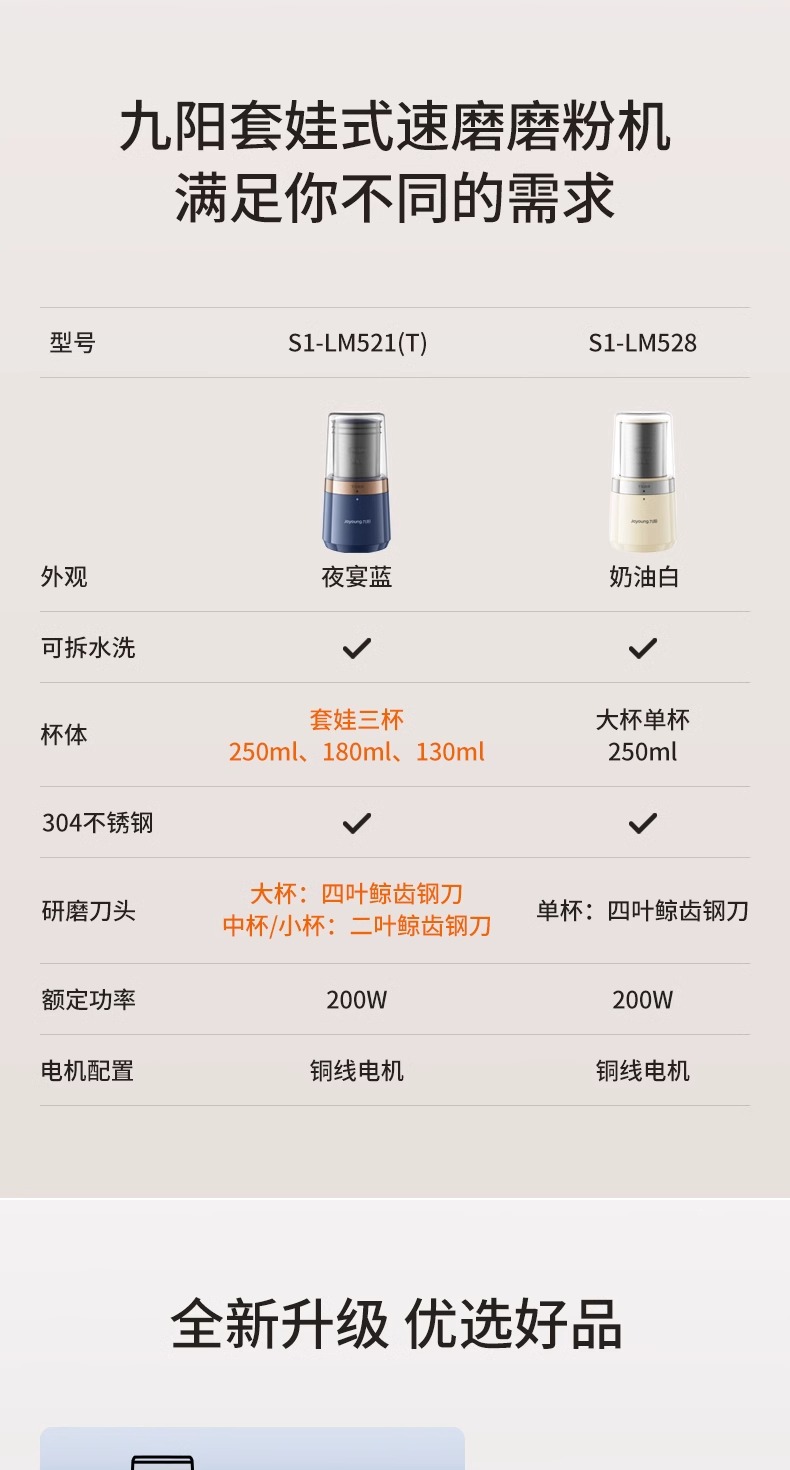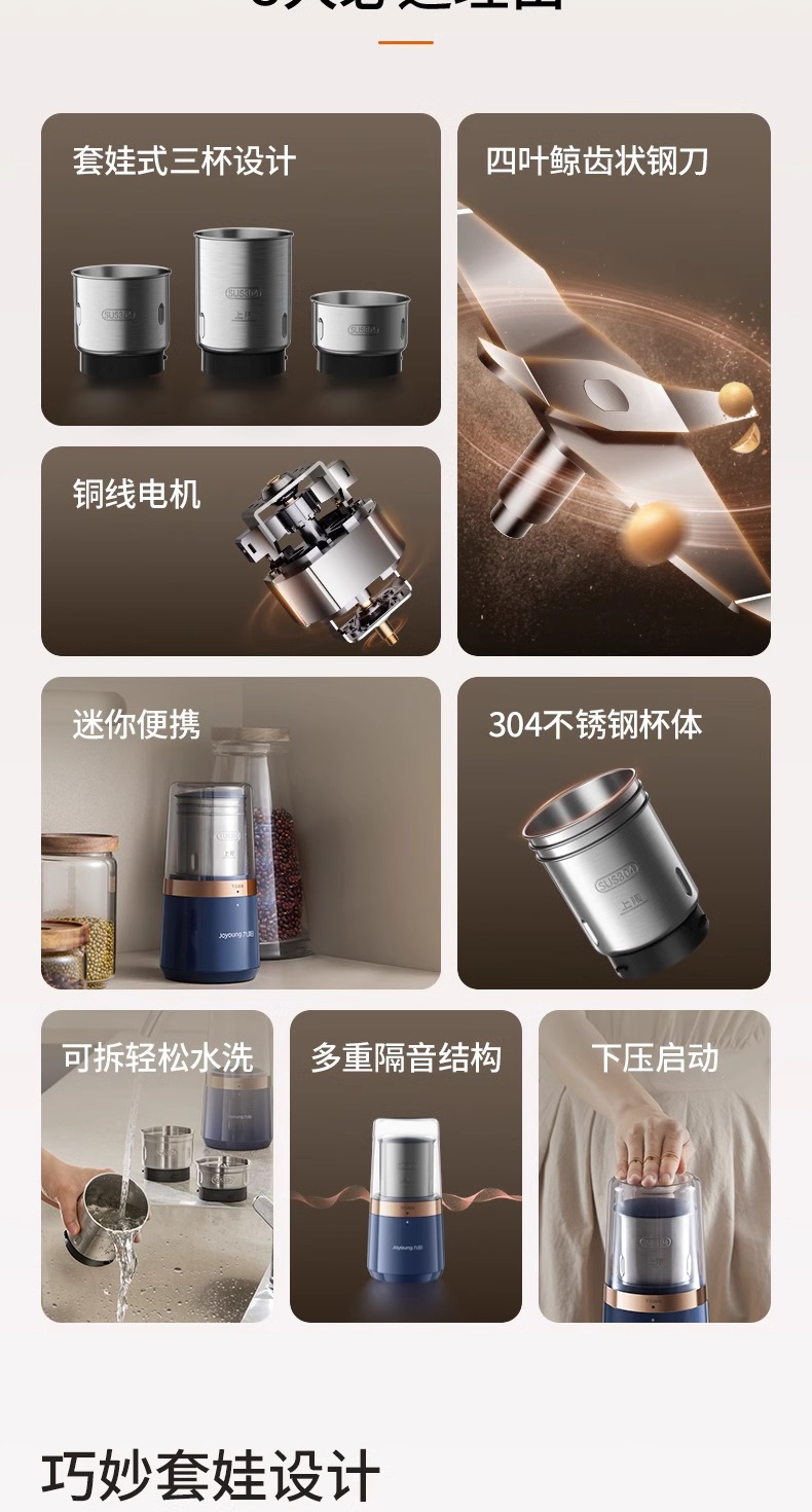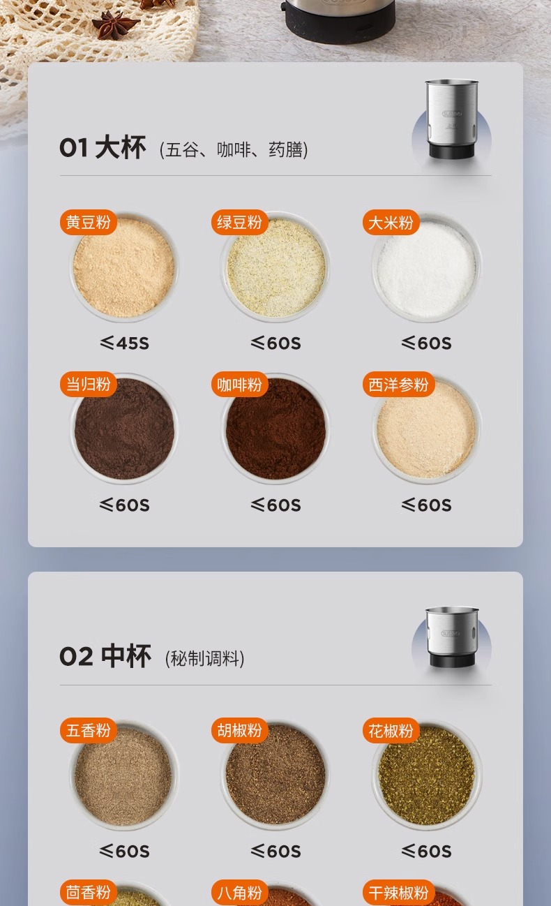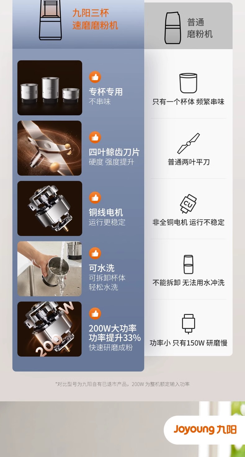 九阳磨粉机研磨机辅食机多功能料理机电动打粉机超细粗杂粮粉碎机