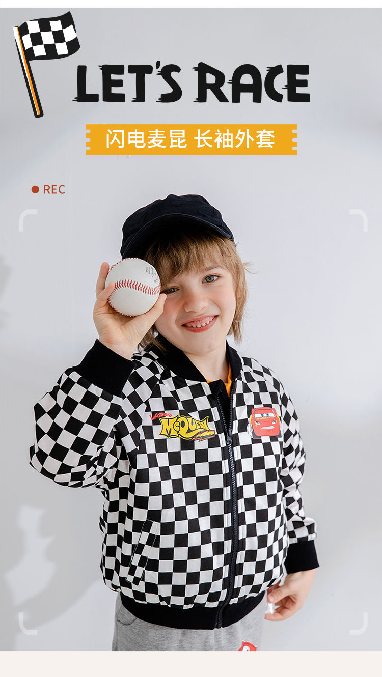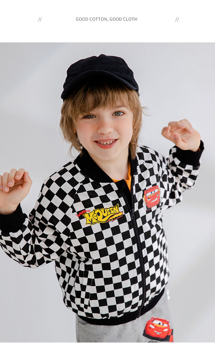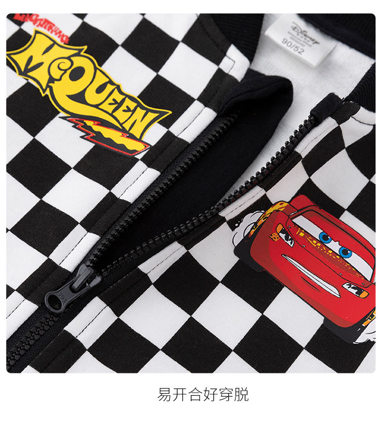 迪士尼童装 男童外套儿童格子纯棉上衣中小童春季新款开衫衣服潮