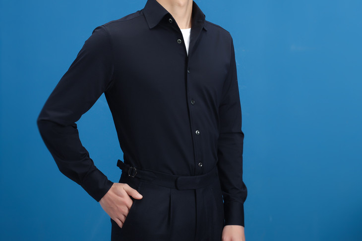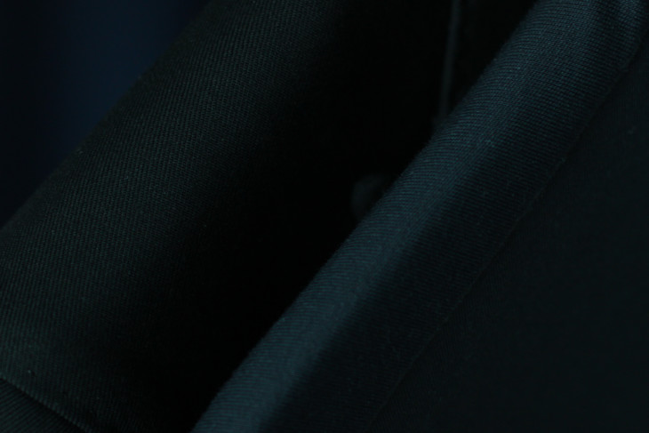 穿上身颜色会更深一些,但跟呆板的纯黑还是有区别的。之前在讲西装的时候我提到过,纯黑色不那么好看的一个原因是,在光照下容易显脏。