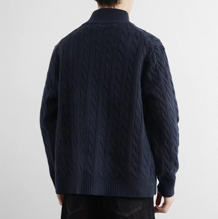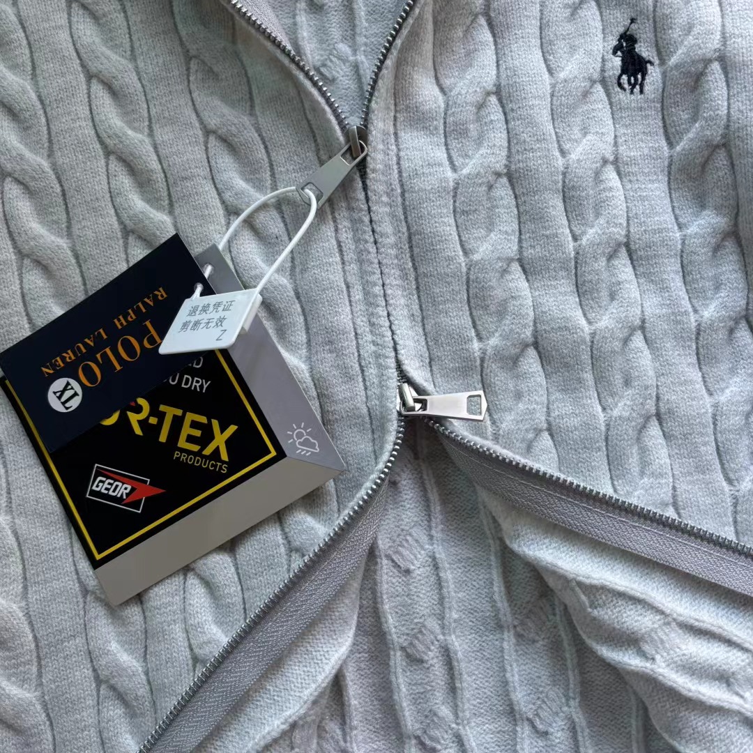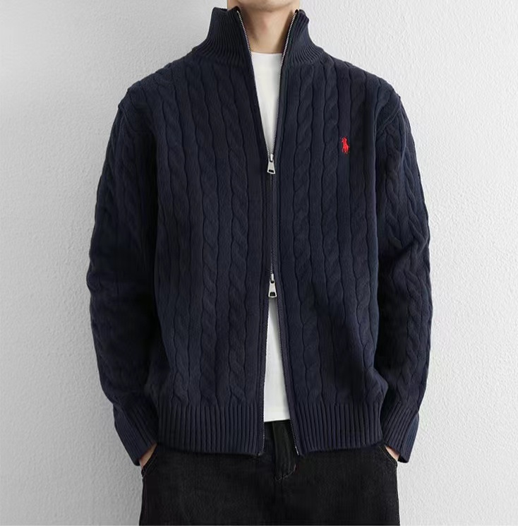 F020245针织拉链毛衣外套夹克情侣男女同款小马刺绣logo麻花毛衣