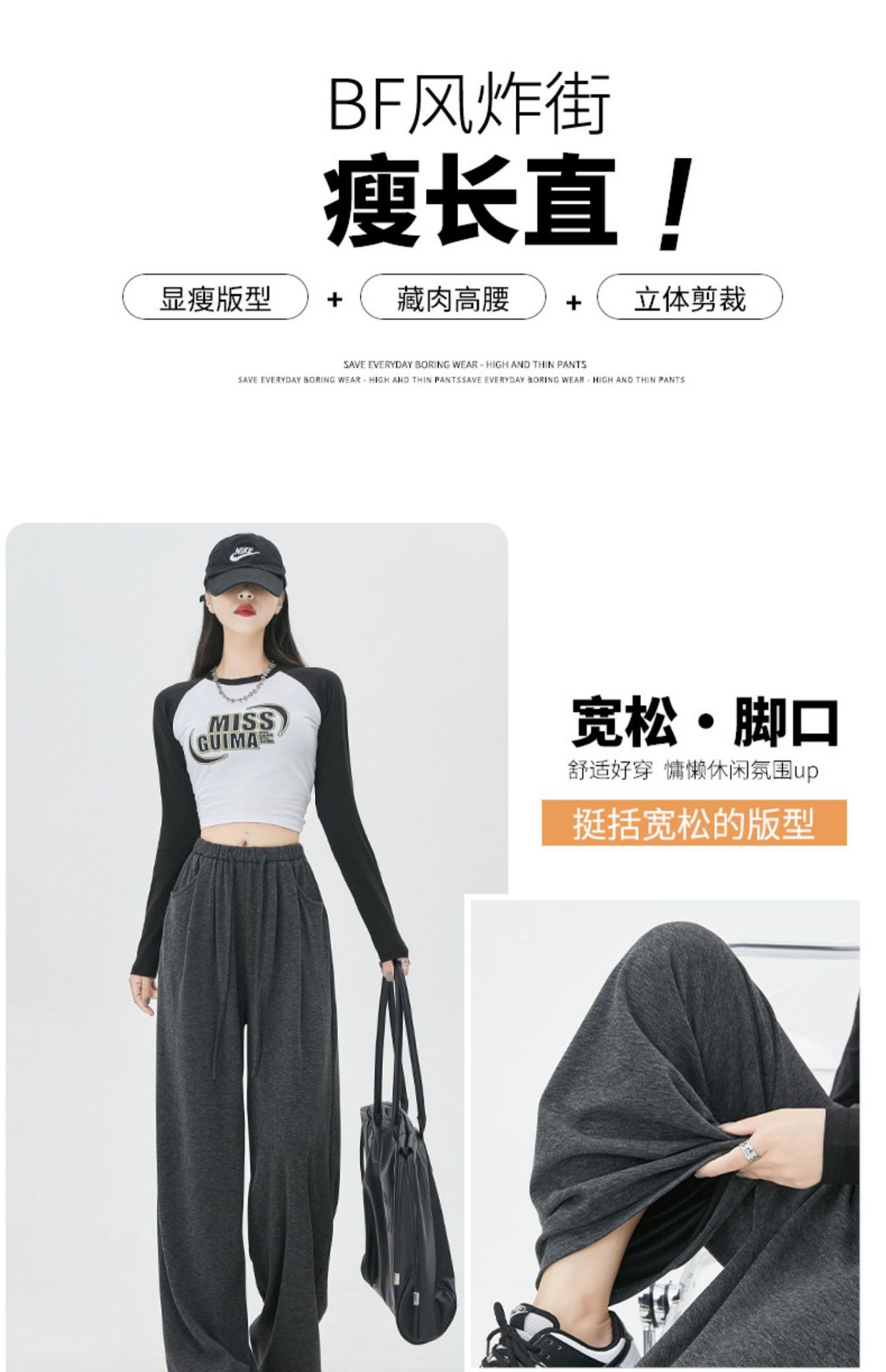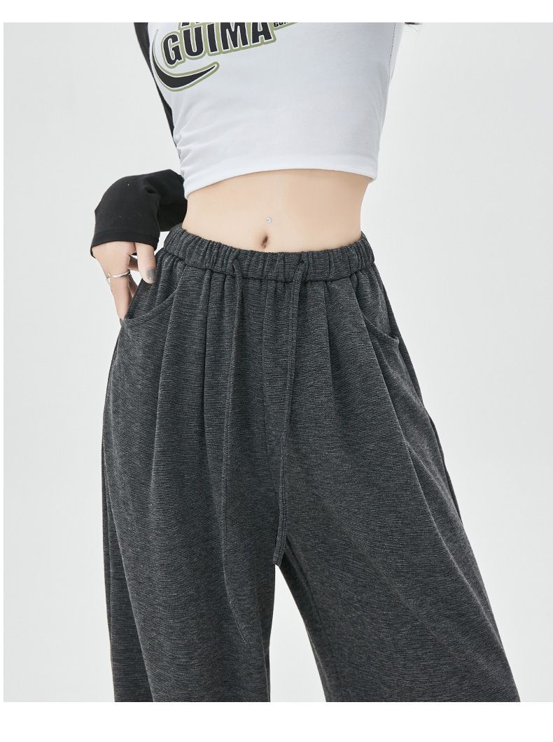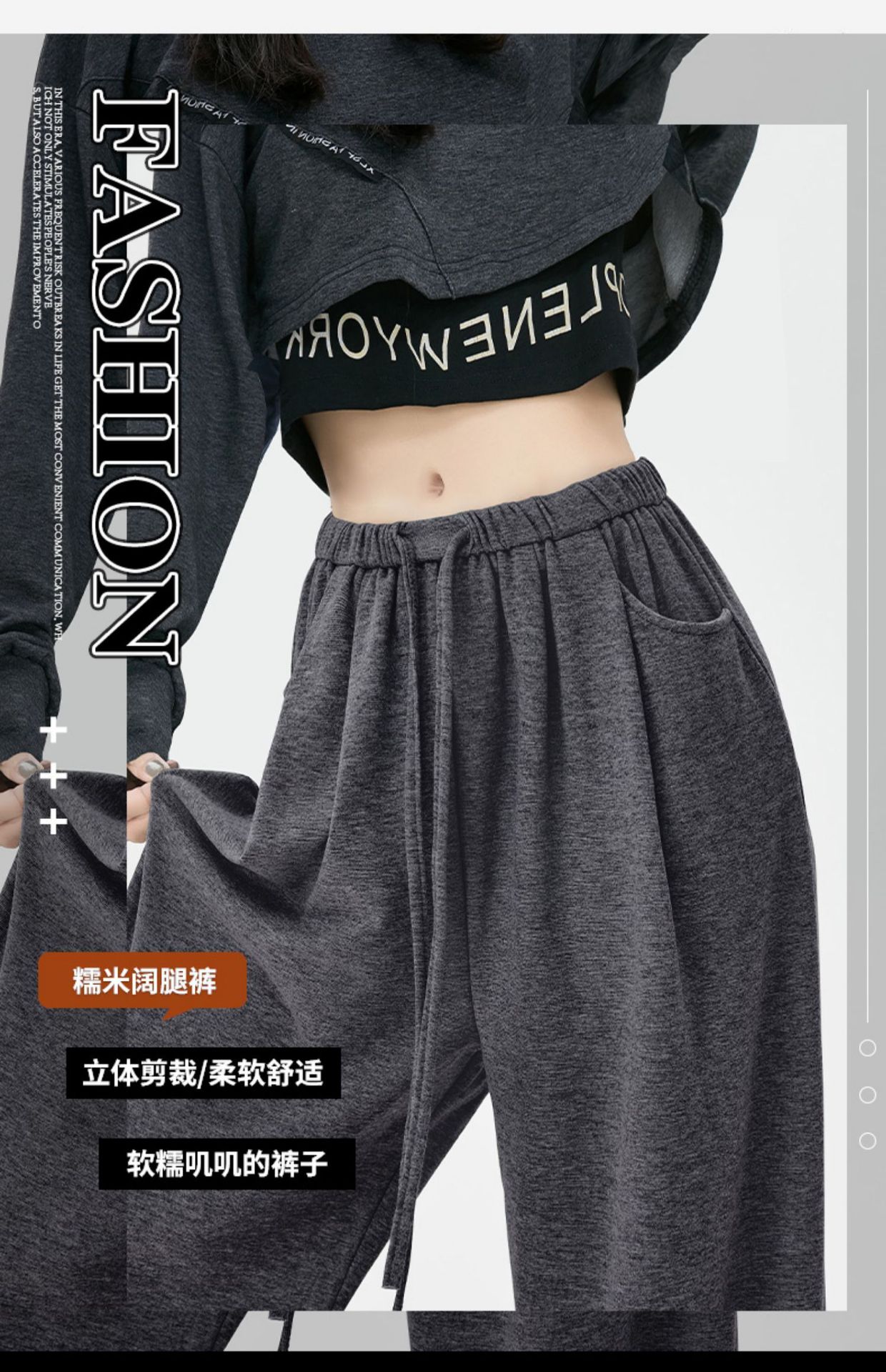 黑灰色糯米裤女秋冬季宽松春秋直筒休闲加绒运动阔腿裤子跨境货源