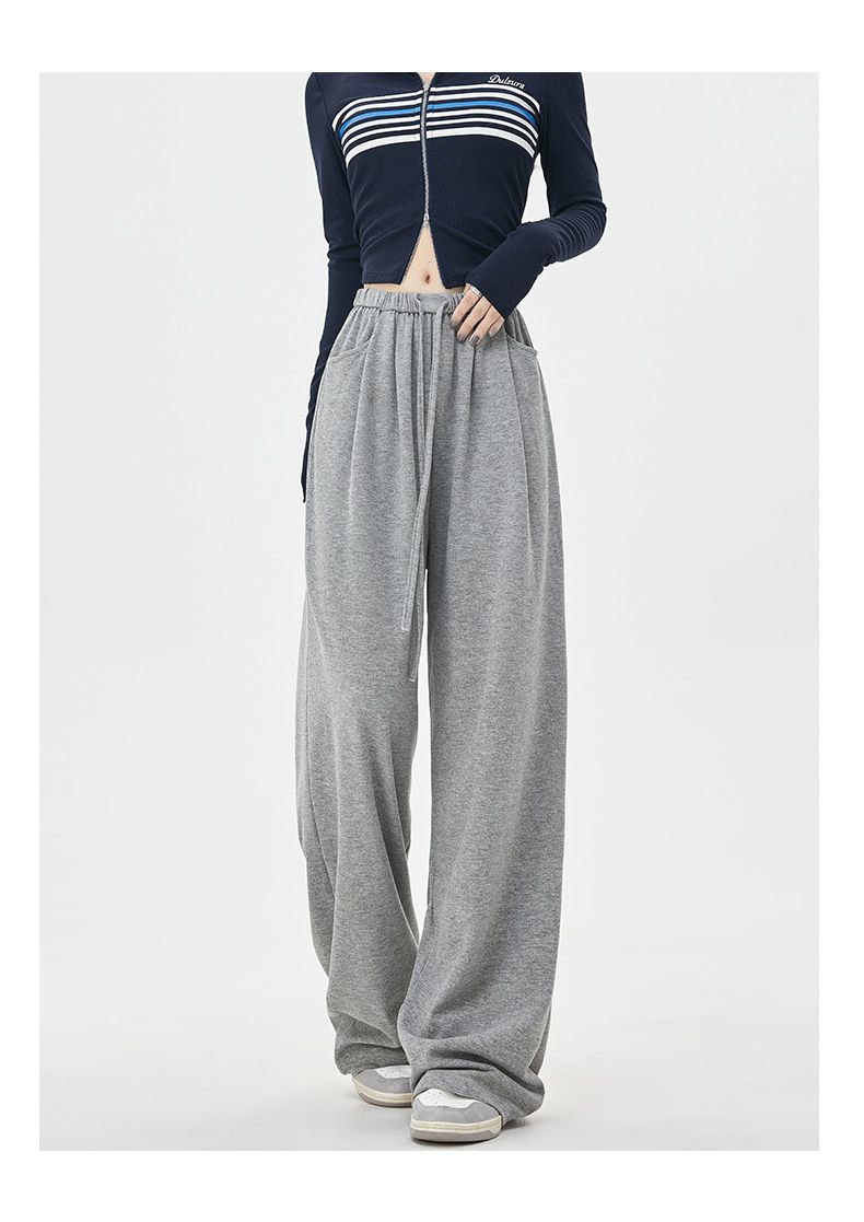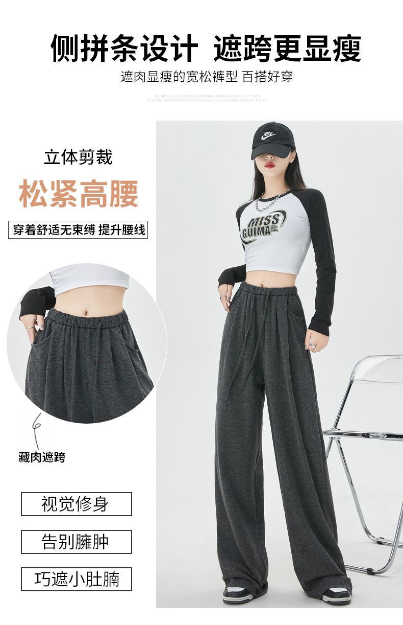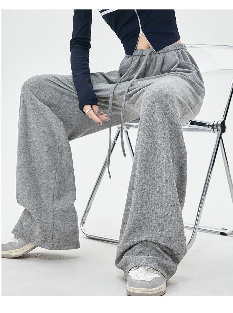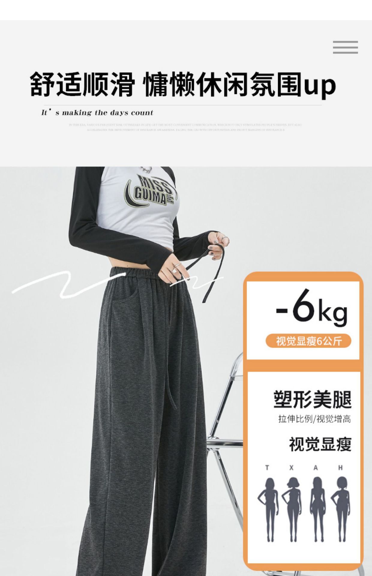 黑灰色糯米裤女秋冬季宽松春秋直筒休闲加绒运动阔腿裤子跨境货源