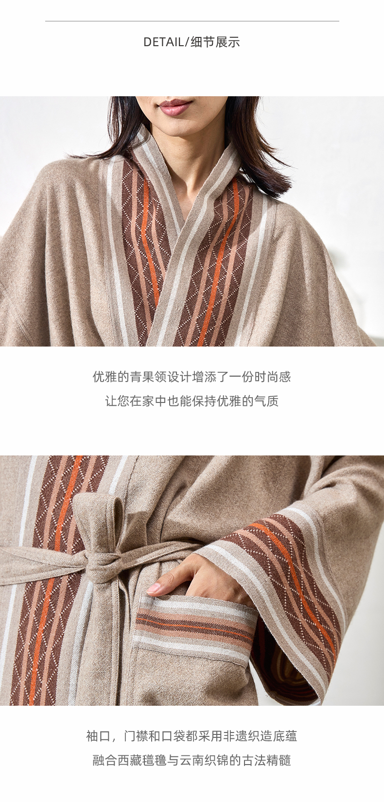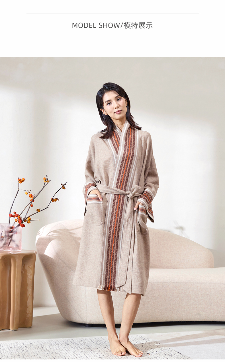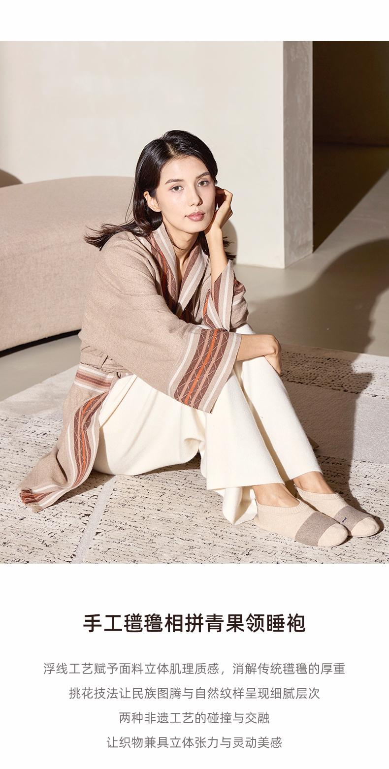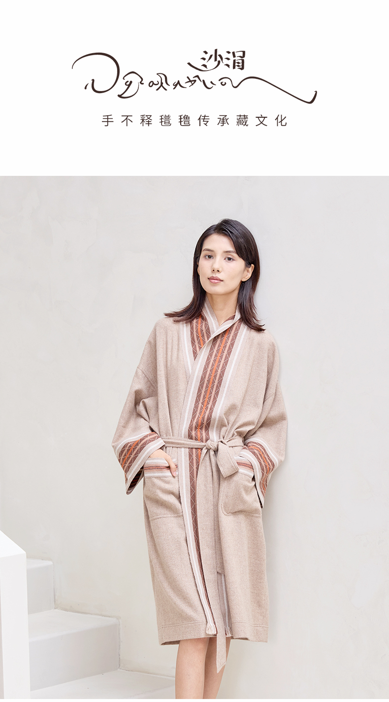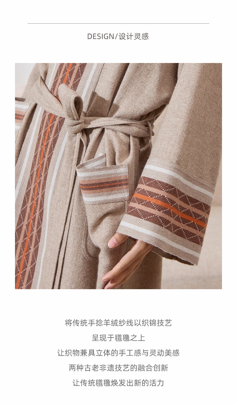 手工氆氇相拼青果领睡袍 SJF98W202N