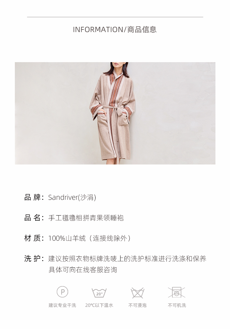 历年在巴黎时装周亮相,享誉世界的艺术羊绒品牌[Sandriver 沙涓]由羊绒布道者郭秀玲女士创立。阿拉善自有牧场纯种羔羊绒,日本国宝设计师小筱顺子,上海自有基地精工细作。承载羊绒情怀,坚持匠人品质。
