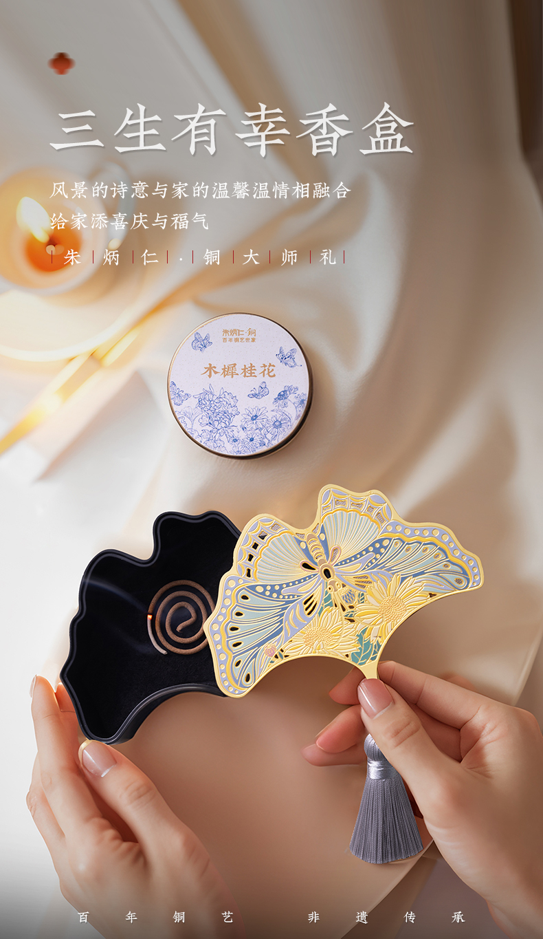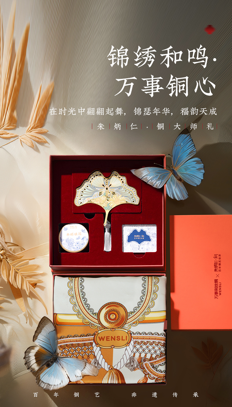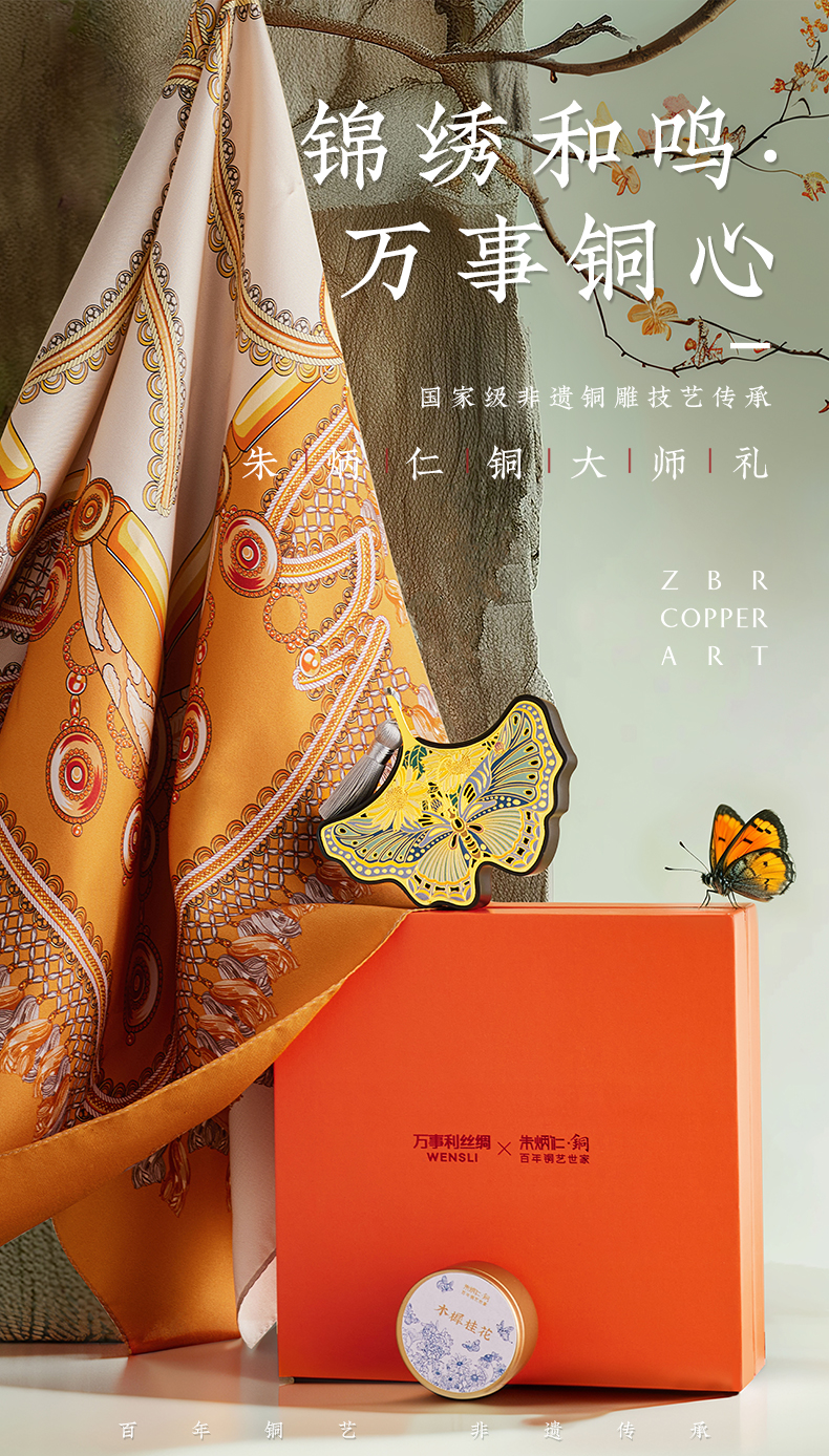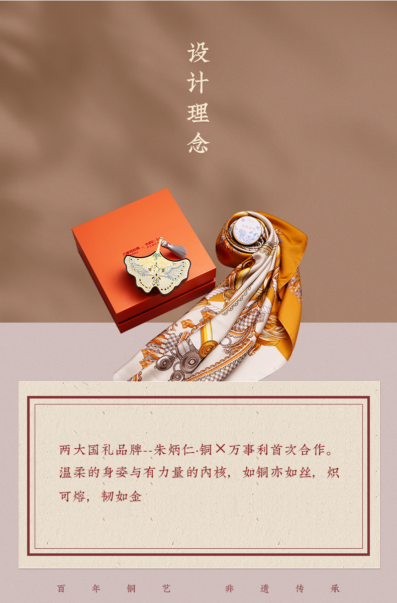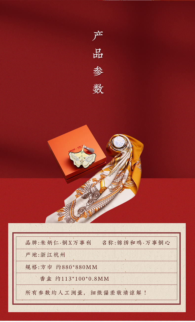 朱炳仁铜x万事利【锦绣和鸣·万事铜心】礼盒 香薰丝绸丝巾套装 礼物