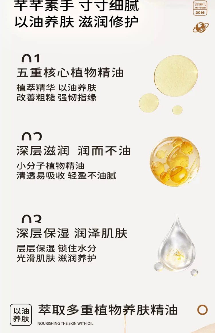 “安的种子”护手精华油,以油养手真的牛,手部护理千万别忽视 纯天然植物精华油 ❤五种纯植物核心成分 轻透易吸收 轻盈不油腻
