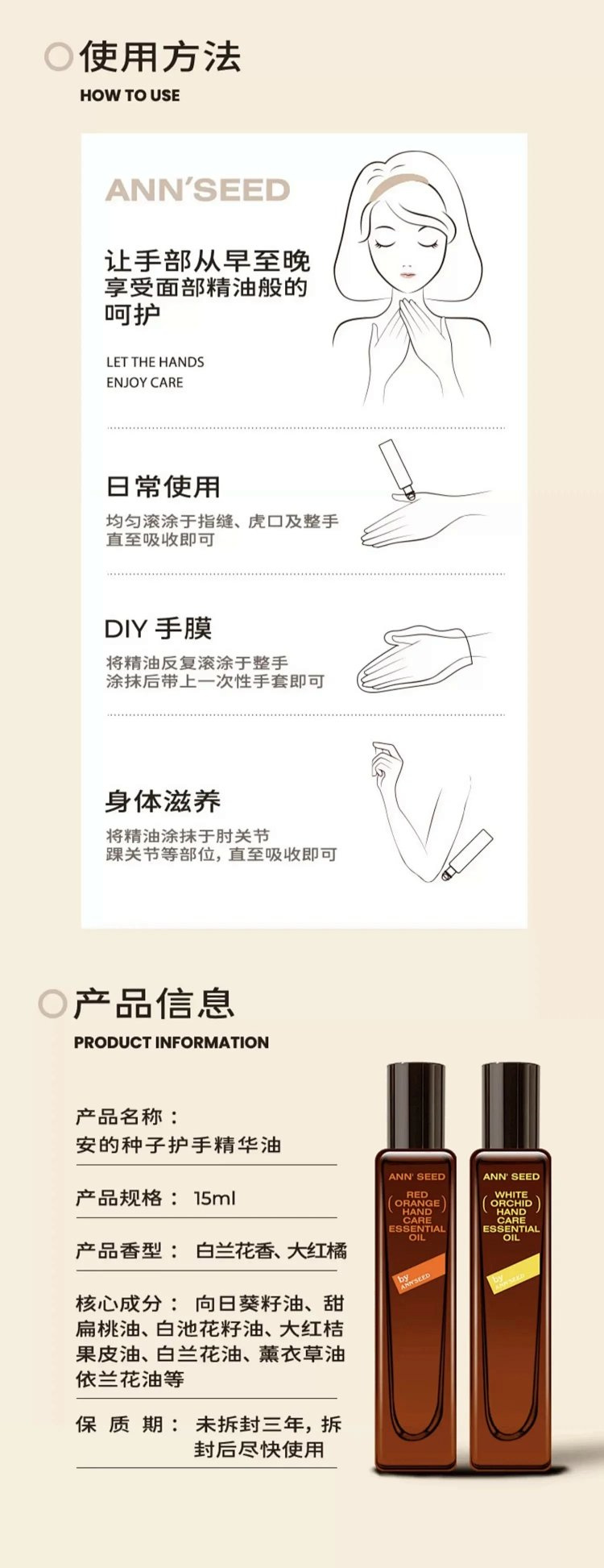 【产品名称】: 安的种子白兰花香护手精华油/ 安的种子大红橘护手精华油