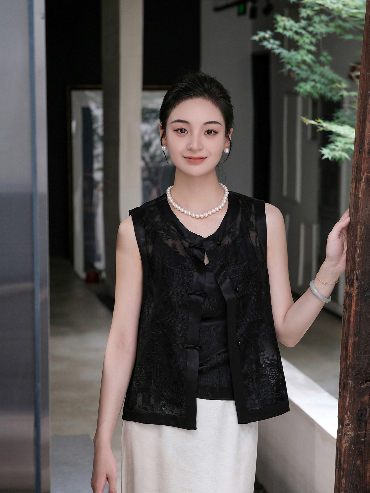 盛唐婧 |桑蚕丝真丝绡短款马甲-黑色