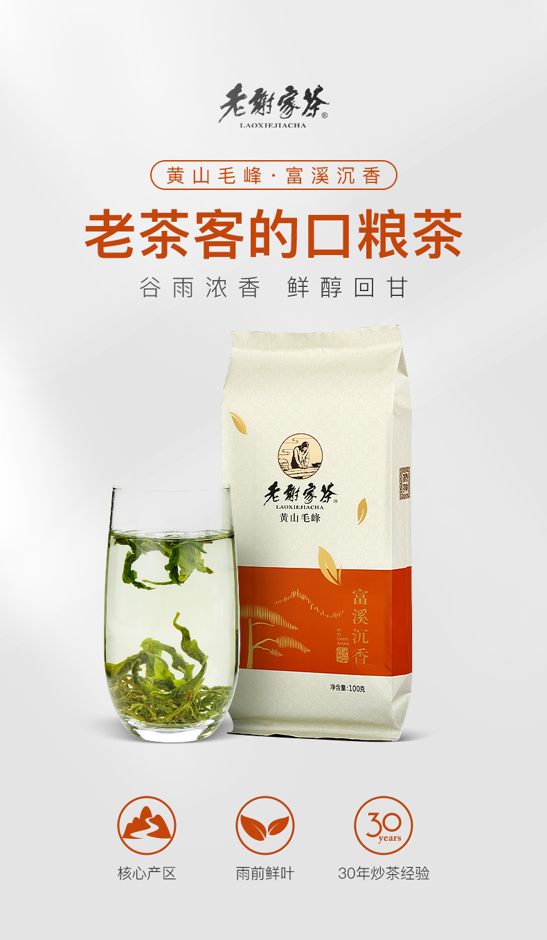 老谢家茶 黄山毛峰 绿茶 富溪沉香 100g