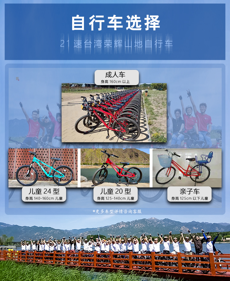 2)自行车:21速山地自行车及骑车护具(儿童用车请报名时说明,费用同成人);