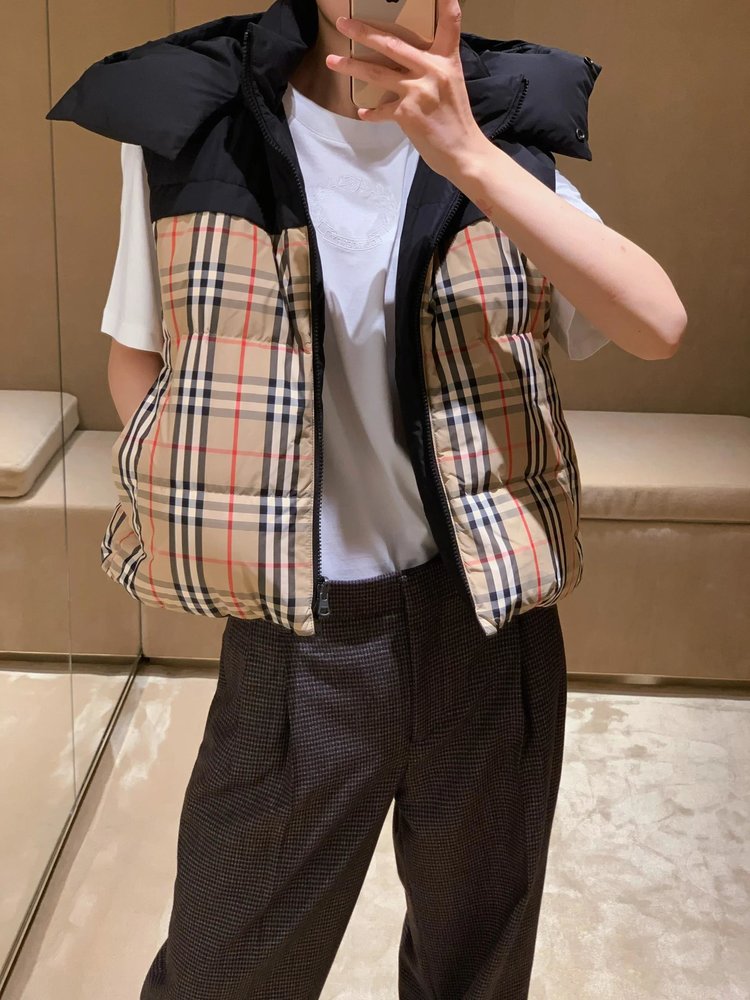 面料采用6种纱线定织定染而成,每一根纱线都要拆剪分析;大身门禁对位 肩缝前后左右对位,领口袖口对位 面料不能纬斜太严重,车位需要调整逢头来确保完美对位,中间填充的是高品质鹅绒,精选狮头鹅,羽梗小,手感灰常的柔软,而且无异味,大朵大朵的鹅绒,将马甲的边边角角都填满了。